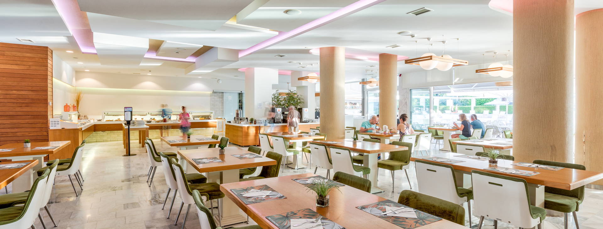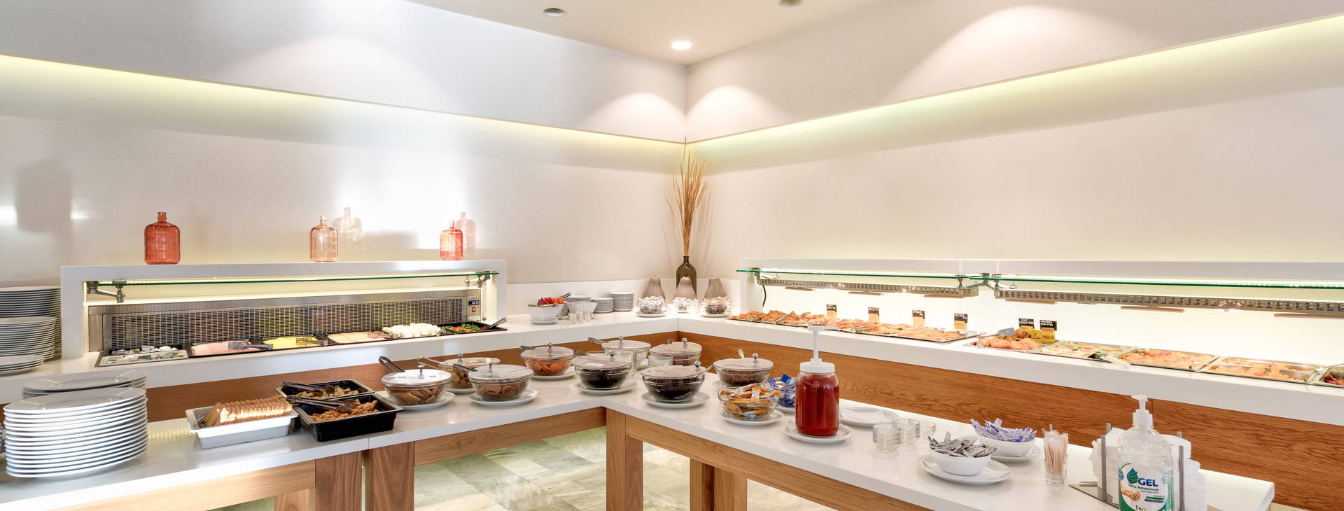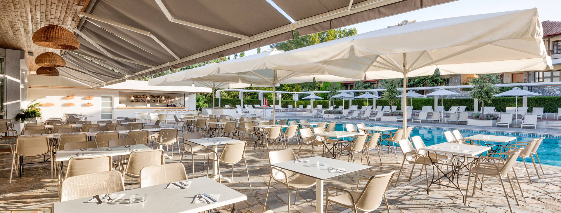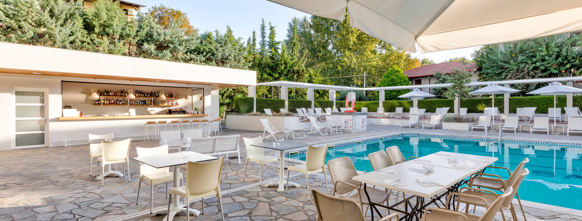 All Inclusive: snídaně formou bufetu (07:30-9:00), oběd (13:00-14:30), večeře formou bufetu (19:00-21:00). Nealkoholické nápoje a místní alkoholické nápoje: červené a bílé víno, pivo, ouzo, brandy (11:30-22:00). Kromě toho se na baru podává zmrzlina, káva a čaj.