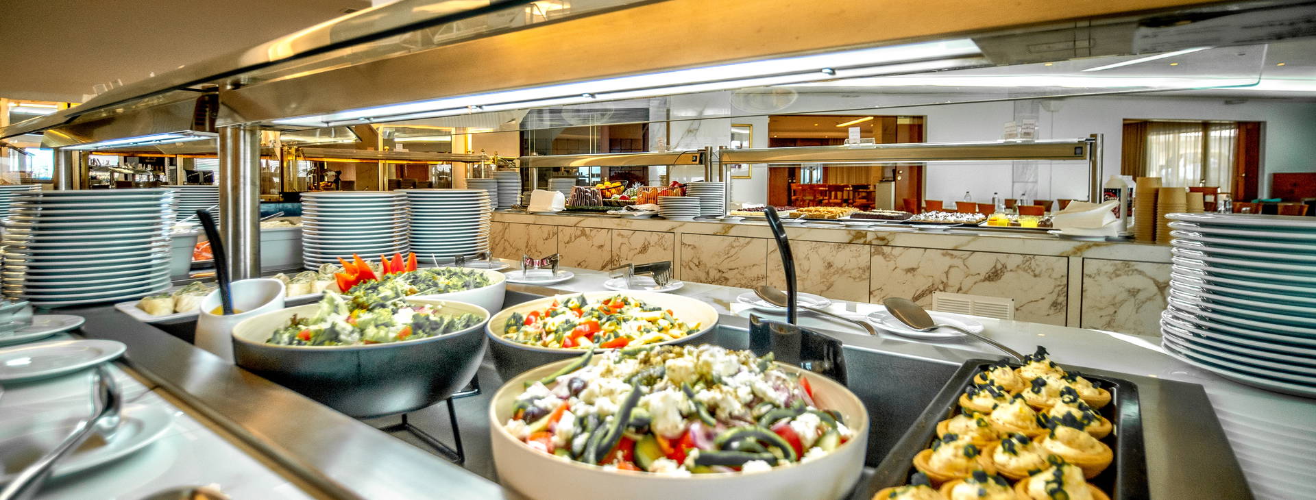 All inclusive zahrnuje: snídaně - formou bufetu, oběd: salát a lehký hlavní chod v podobě musaky nebo špaget, večeře - rozšířený bufet, několik jídel na výběr ze studeného bufetu (saláty, zelenina), několik jídel na výběr z teplého bufetu (polévka dne, předkrmy, hlavní jídla) + několik druhů dezertů na výběr. Nealkoholické nápoje a místní alkoholické nápoje: pivo, ouzo, raki, brandy (10:00-22:00), v baru u bazénu.