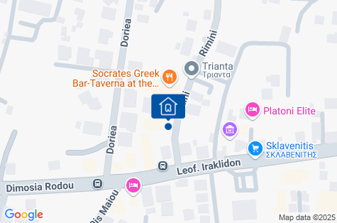 Útulný rodinný hotel se nachází asi 500 m od centra městečka Ialyssos s širokou nabídkou restaurací, taveren a obchodů se suvenýry. Hotel je také vzdálen jen asi 6 km od hlavního města ostrova, města Rhodos, se středověkým starým městem a půvabnými dlážděnými uličkami. Od mezinárodního letiště Diagoras je hotel vzdálen přibližně 8 km.