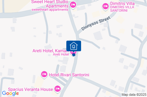 Hotel se nachází v centru oblíbeného letoviska Kamari na ostrově Santorini. Přímo u hotelu se nachází dlouhá promenáda, která nabízí široký výběr restaurací, taveren, dobře vybavených plážových barů. Santorini je výjimečným místem pro strávení skutečně jedinečné dovolené. Dechberoucí výhled na kalderu, bílé domky přilepené k boku sopky a nejkrásnější západy slunce v Oia jsou jen některé z atrakcí, které zde najdete. Nemovitost se nachází přibližně v 10 km od Oia. 8 km od hlavního města ostrova Fira a asi 6 km od letiště.