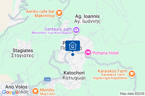 Hotel se nachází na svahu v srdci horské vesnice Portaria, ve zrekonstruovaném sídle z 19. století. Vzdálenost od centra Portaria je cca 500 m. Vzdálenost od centra města Volos je cca 12 km. Minimarket se nachází přibližně 150 m od objektu. Autobusová zastávka se nachází přibližně 200 m od hotelu. Letiště je vzdáleno přibližně 50 km od hotelu.