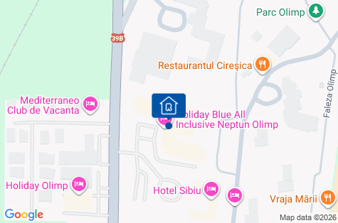 Hotel se nachází ve městě Olympus, asi 62 km od letiště Constanta. Přibližně 5 km od centra Neptunu a 2 km od zábavního parku Paradis Land. Blízko restaurace, minimarkety na pláži, bary.