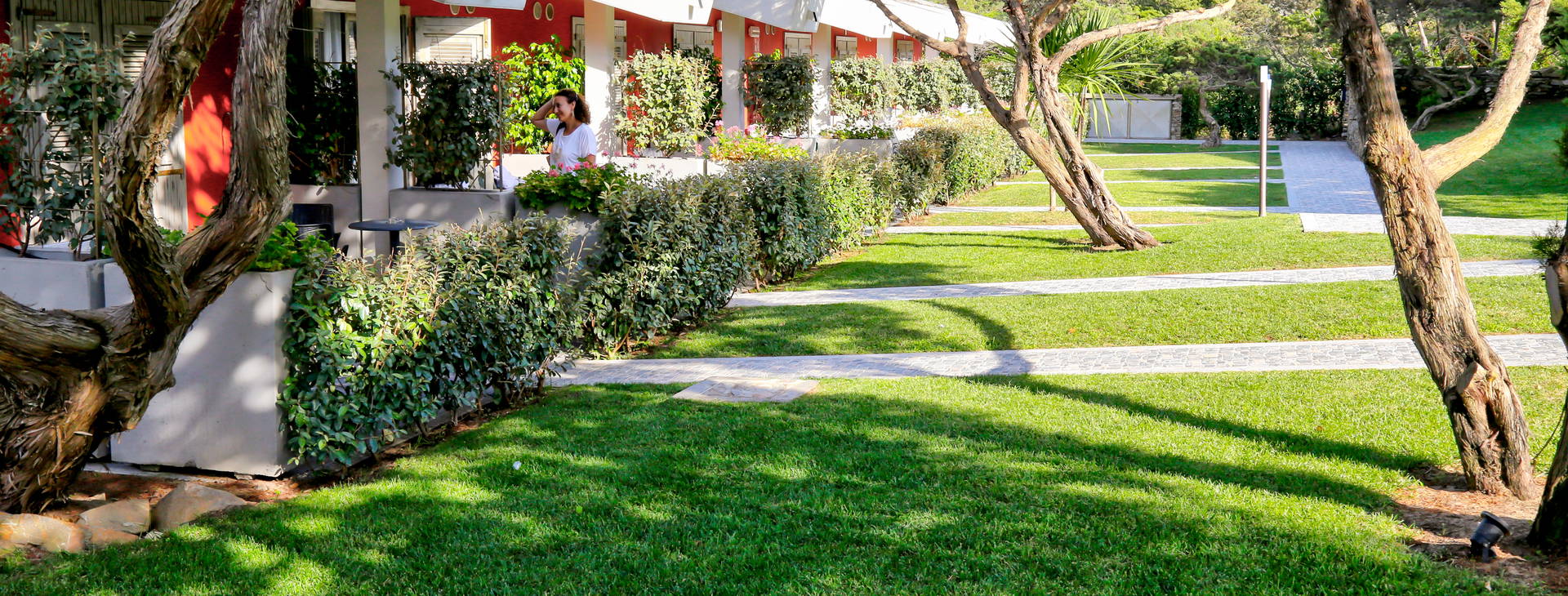 .Hotel se skládá z hlavní budovy a několika menších budov obklopených udržovanou zahradou. K dispozici je recepce s nepřetržitým provozem, restaurace s výhledem na moře, která nabízí jídla formou bufetu s bohatou nabídkou regionální, italské a mezinárodní kuchyně, a bar. Dále bazén s lehátky a slunečníky zdarma (koupací čepice povinné). Osušky na koupání k dispozici za zálohu cca 10 EUR/ks. (výměna pokaždé cca 3 EUR).