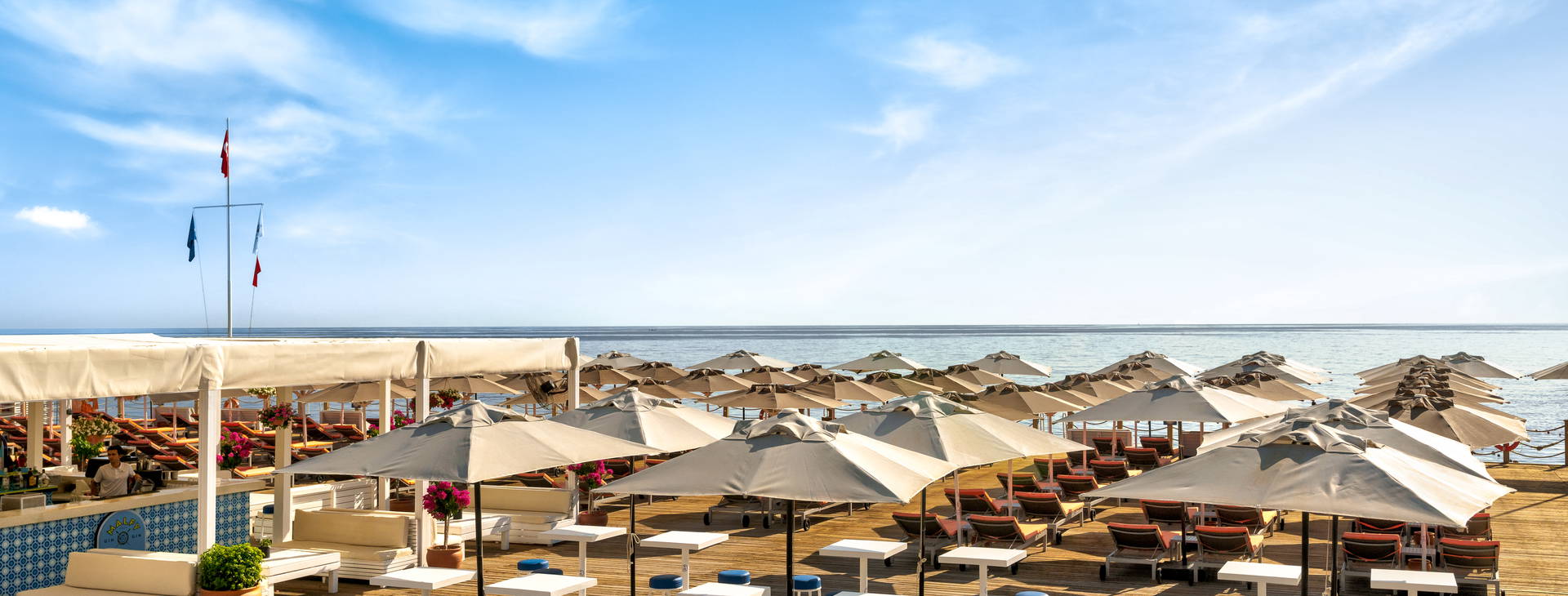 Hotel má vlastní 200 metrů dlouhou písečnou pláž se slunečníky a lehátky zdarma. Na molu, které zasahuje hluboko do moře, jsou k dispozici speciální soukromé pavilony.