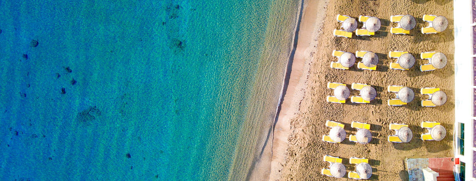 Hotel se nachází přímo na soukromé, poměrně úzké písečné pláži. Lehátka, slunečníky a osušky na pláži - zdarma.