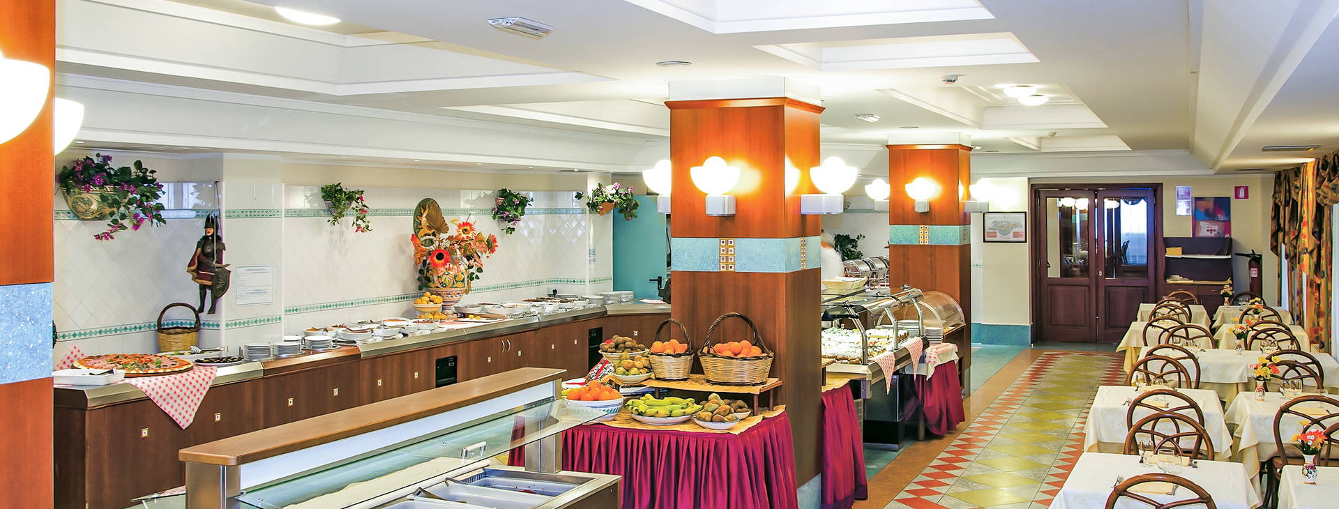 Snídaně. Za příplatek možnost polopenze nebo all Inclusive: snídaně (7:00-10:00), oběd (12:45-14:15) a večeře (19:15-21:15) formou bohatého bufetu. Nápoje podávané k jídlu a mezi 10:00 a 24:00 zahrnují: šumivé víno, víno, pivo, minerální vodu, kolu, pomerančový džus, sprite, kávu, čaj.
