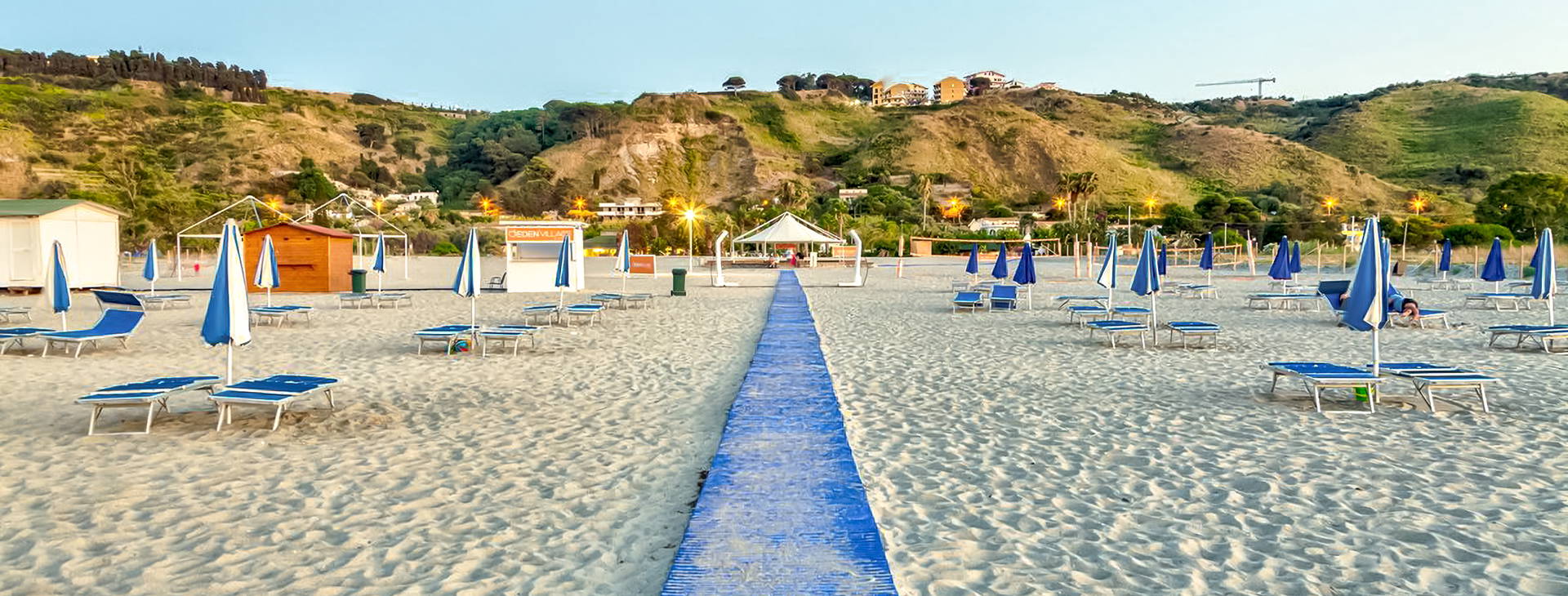Hotel se nachází přímo na jedné z nejkrásnějších písečných pláží na Sicílii. Široká pláž s pozvolným sestupem do moře (místy možné kamenité dno) s lehátky a slunečníky od 2. řady zdarma. Osušky za poplatek (cca 2 €/osoba/den nebo 10 €/osoba/týden).