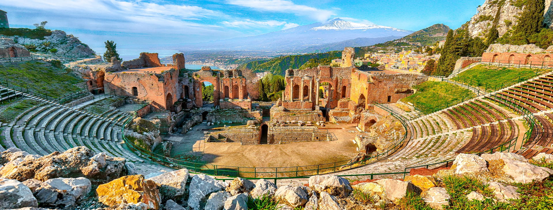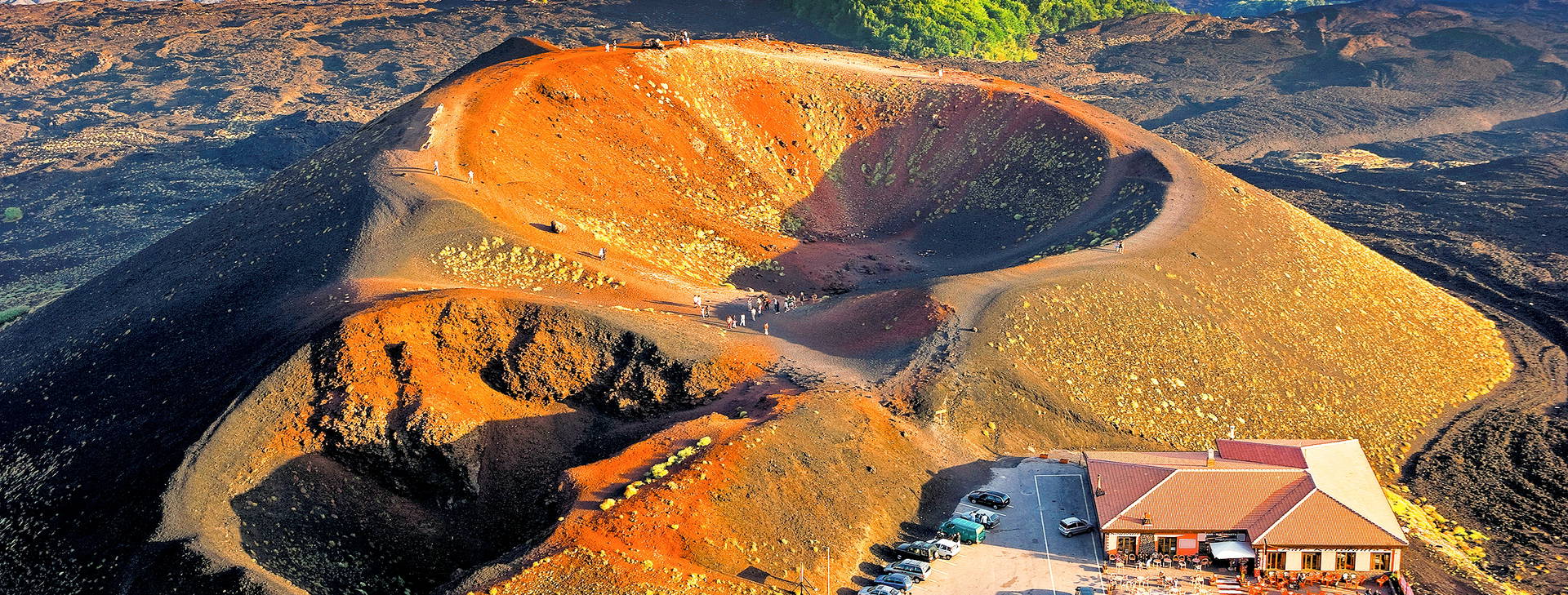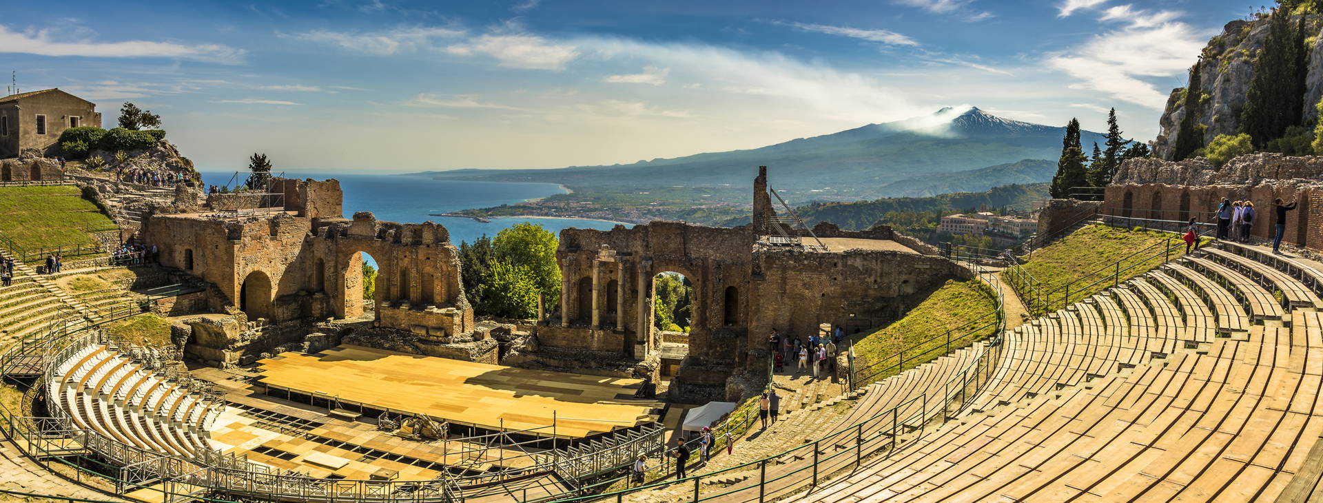 Po snídani přejezd k Etně - největší a nejvyšší aktivní sopce Evropy. Výjezd do výšky cca 2000 m n. m., procházka kolem jednoho z vyhaslých kráterů a pro zájemce možnost výjezdu speciálním terénním autobusem do výšky cca 3000 m n. m., do blízkosti hlavního kráteru (za poplatek). Přejezd do Taorminy visící na skalách - nejznámějšího letoviska na ostrově. Procházka fascinujícím starým městem, návštěva antického divadla - nejkrásnějšího starobylého řeckého divadla v Itálii, odkud se rozprostírá úžasný výhled na Etnu a pobřeží Jónského moře. Návrat do hotelu na přenocování. (Trasa cca 160 km)
