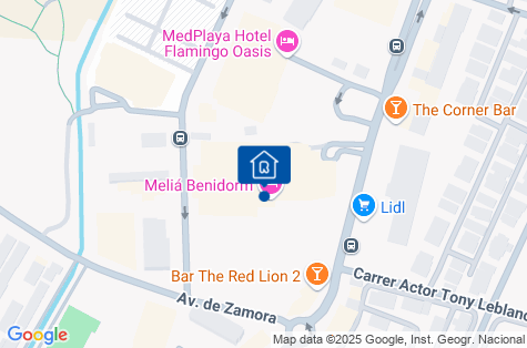 Vícepodlažní hotel známého řetězce Melia se nachází ve městě Benidorm, které je proslulé svými plážemi a nočním životem. V blízkosti se nacházejí bary, obchody, restaurace a autobusová zastávka. Přibližně 2 km od turistické stezky přírodního parku Serra Gelada s výhledem na útesy a Středozemní moře. Domácí zvířata nejsou přijímána. Na letiště Alicante cca 60 km.
