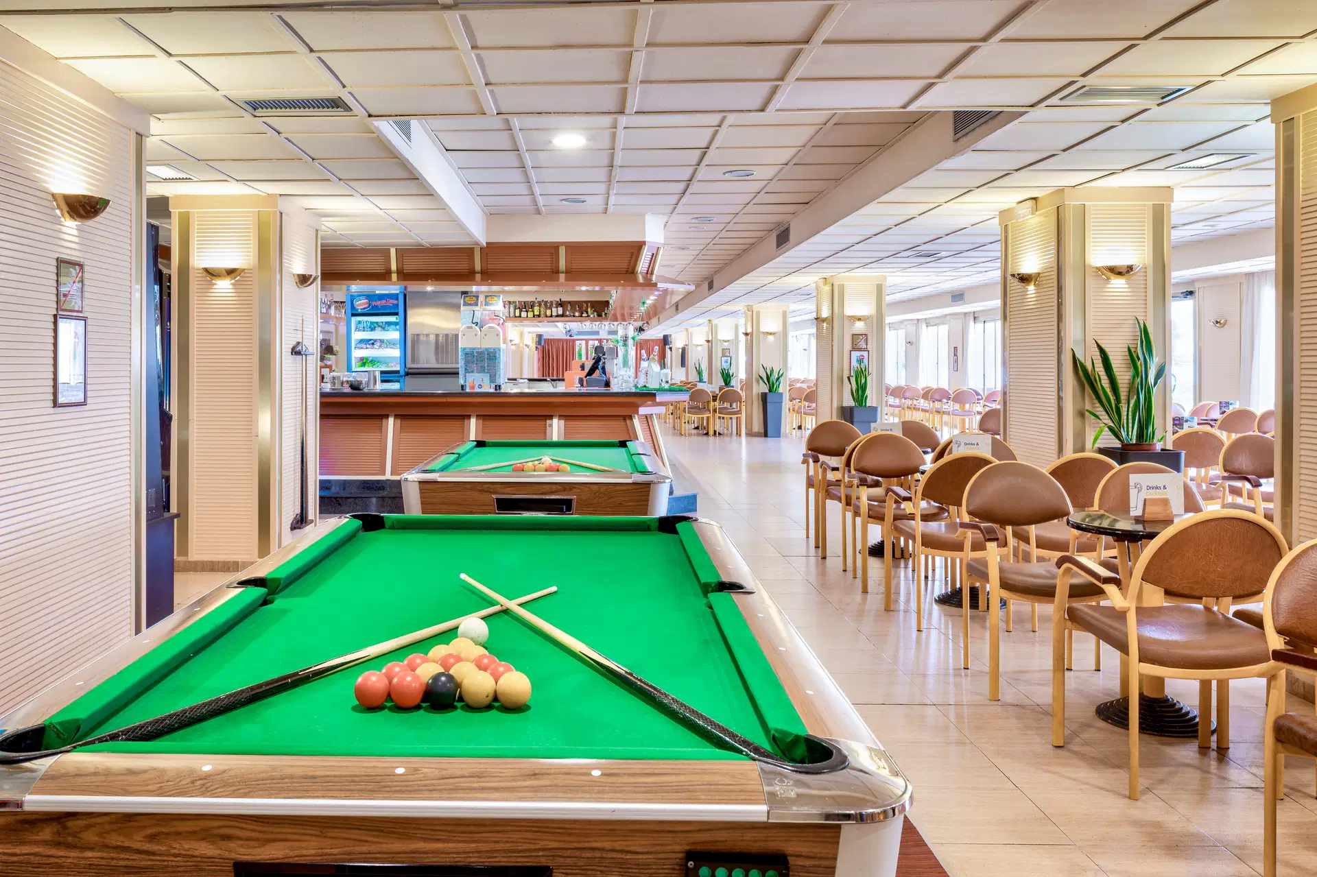 Recepce, lobby s barem, restaurace, snack bar, sluneční terasa s bazénem a brouzdalištěm (v bazénech je sladká voda), malý krytý vyhřívaný bazén, sluneční terasa u bazénu a na střeše, miniklub, obchod se suvenýry, internetové stanice za příplatek. Hotel neposkytuje plážové osušky. Na pláži jsou lehátka a slunečníky za poplatek cca 6-7 Eur/osoba.
