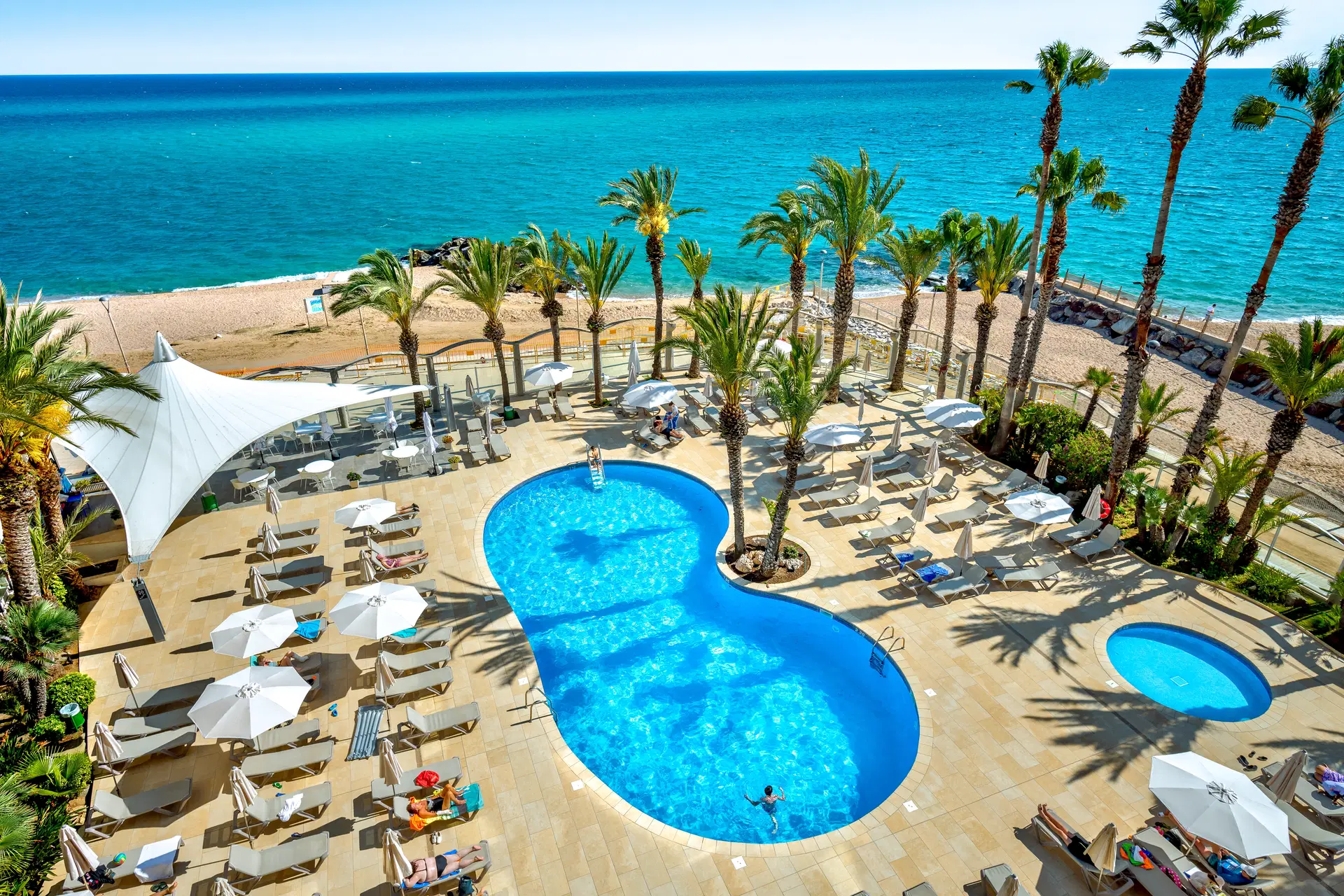 Hotel se nachází na písčito-oblázkové pláži, asi 100 metrů od pobřežní promenády s mnoha obchody, kavárnami a restauracemi. Centrum městečka Santa Susanna je vzdáleno cca 500 m. Přímo u hotelu se nachází zastávka vlaku spojujícího pobřeží s Barcelonou. Na barcelonské letiště je to cca 70 km.