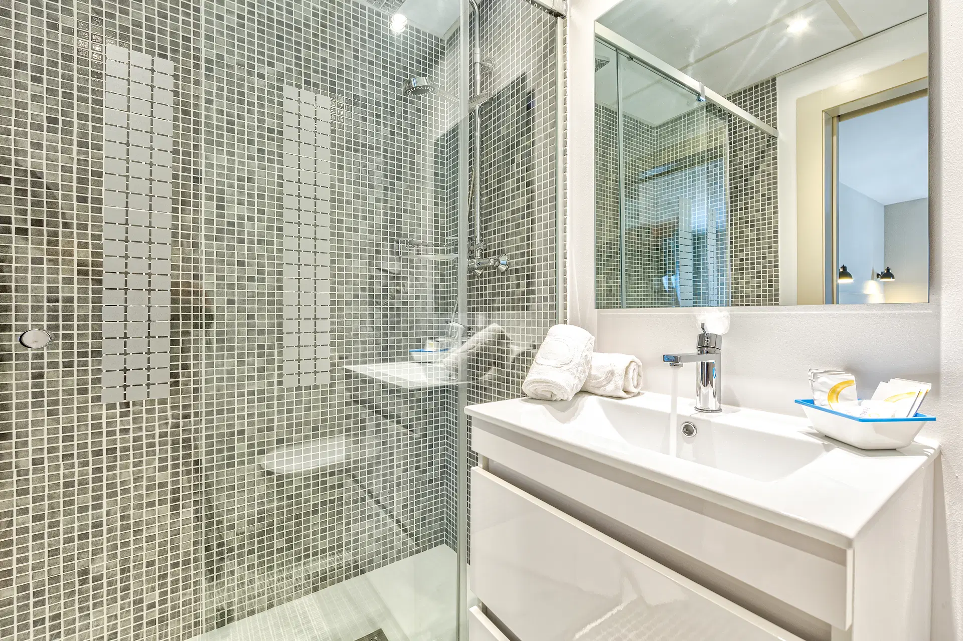 Hotel je od písečné pláže oddělen promenádou (povolenou pro automobilovou dopravu) a železnicí spojující pobřeží s Barcelonou. Na pláži jsou k dispozici lehátka a slunečníky - za poplatek (cca 5 €/osoba).