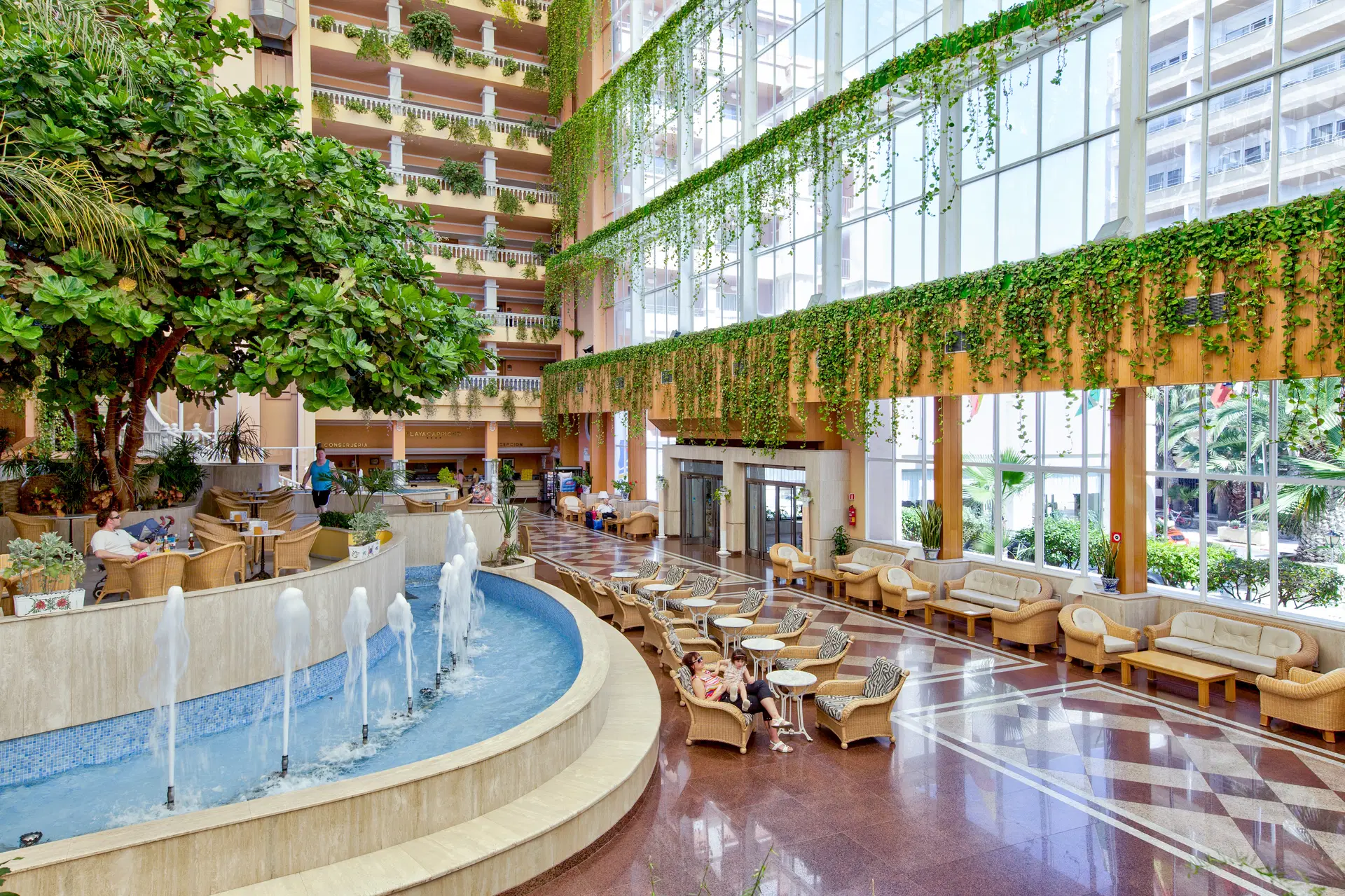 Recepce, prostorná vstupní hala, výtahy, hlavní restaurace, bary, sluneční terasa v palmové zahradě, samostatná sluneční terasa pro naturisty, velký bazén se skluzavkami, vířivka, dětské hřiště, miniklub, obchod se suvenýry, půjčovna aut, parkoviště. Hotel poskytuje osušky k bazénu (záloha cca 10 €, výměna cca 1 €),