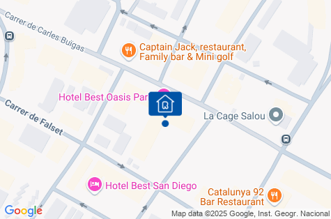 Hotel se nachází v centru města Salou, v blízkosti obchodů, barů a restaurací. Asi 2 km od hotelu se nachází vlakové nádraží (spojení do Barcelony a Tarragony). Asi 100 m od hotelu se nachází zastávka místní dopravy. Na letiště Reus je to přibližně 13 km.
