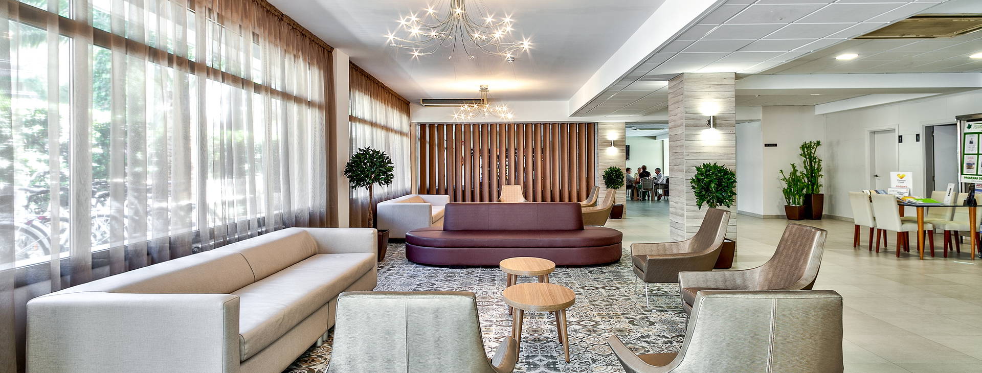 Recepce, lobby, výtahy, restaurace, bar, sluneční terasa s lehátky a slunečníky, 2 bazény (včetně jednoho s vířivkami), 2 dětská brouzdaliště (včetně 1 se skluzavkami), dětské hřiště, miniklub, konferenční místnost, úschovna zavazadel. Hotel poskytuje osušky k bazénu (zdarma, nutná záloha cca 10 €).