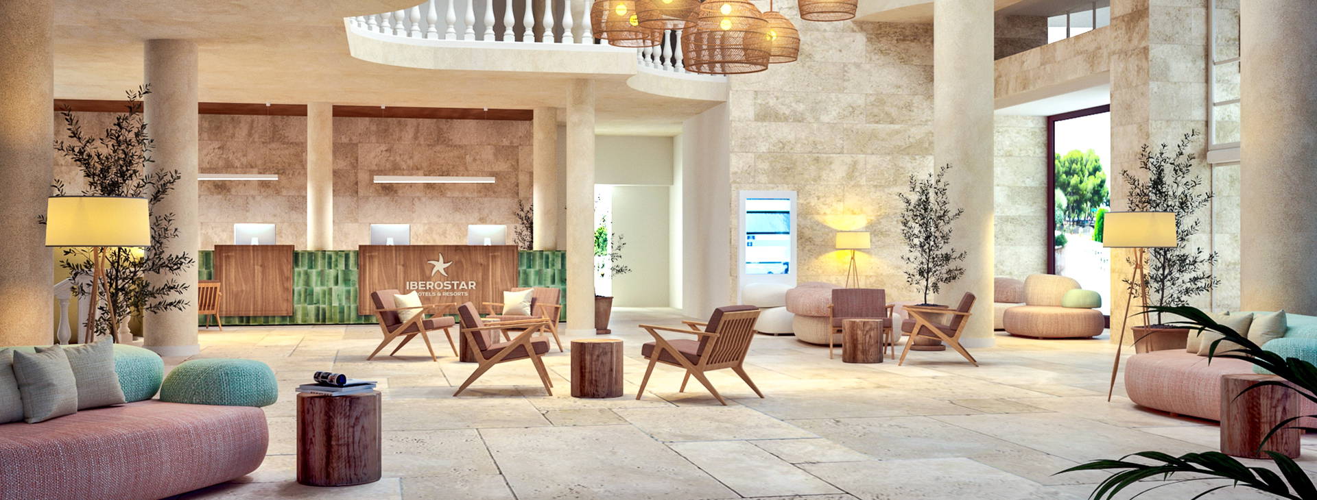 Recepce, lobby, výtahy, hlavní restaurace, bar, bar u bazénu, palmová zahrada se slunečními terasami, lehátky a slunečníky, bazén - ribbon, dětský bazén, krytý bazén, dětské hřiště, půjčovna aut. K dispozici pračka a sušička (za poplatek na místě), lékařská péče (za poplatek na místě), obchod se suvenýry, novinový salonek. Hotel poskytuje osušky - záloha cca 100 Kč. 10 EUR. Kromě toho mohou hosté využívat zařízení vedlejšího hotelu Iberostar Albufera Playa: restaurace a'la carte, bazény, sluneční terasy, lehátka a slunečníky, diskotéka (červenec-srpen).