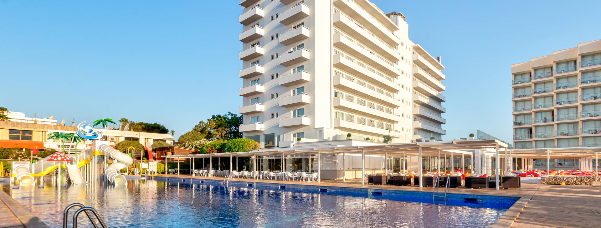Recepce 24 hodin denně, lobby s barem, 2 výtahy, čítárna, klubovna a TV místnost. Restaurace s venkovní terasou a snack barem u velkého sladkovodního bazénu, Classic Beach Bar, tobogán, 2 bazény pro dospělé v klidné části objektu, dětské brouzdaliště, sluneční terasa s lehátky a slunečníky (zdarma) a lehátka s baldachýnem u bazénu (za poplatek 10 EUR/den nebo 50 EUR/týden). Plážové osušky k dispozici za poplatek 5 EUR/týden a zálohu 5 EUR. Akceptovány jsou kreditní karty Visa a Mastercard.