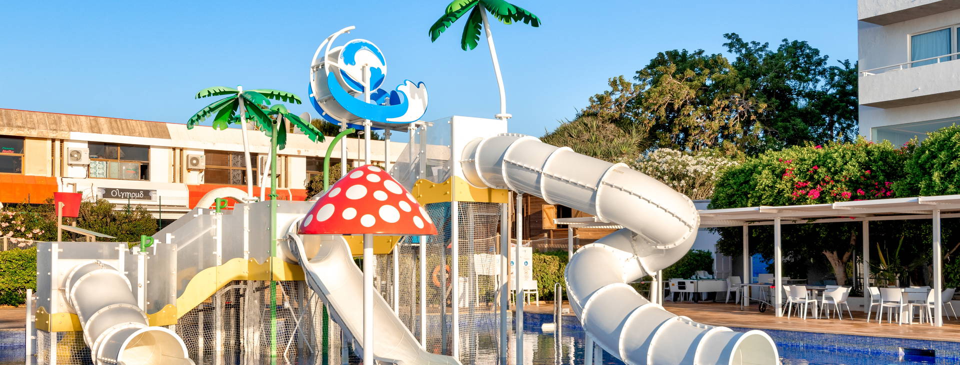 Pro děti: dětské hřiště a miniklub pro děti s animacemi. Zdarma: stolní tenis, tenisový kurt (zapůjčení vybavení - kauce 5 EUR), víceúčelové sportovní hřiště, fitness centrum, sauna, vířivka. V hotelu u největšího z bazénů skluzavky (za příplatek cca 10 EUR/den). Sportovní aktivity pro děti i dospělé, večerní animace. Za poplatek: kulečník (1,50 EUR/hra), hrací automaty.