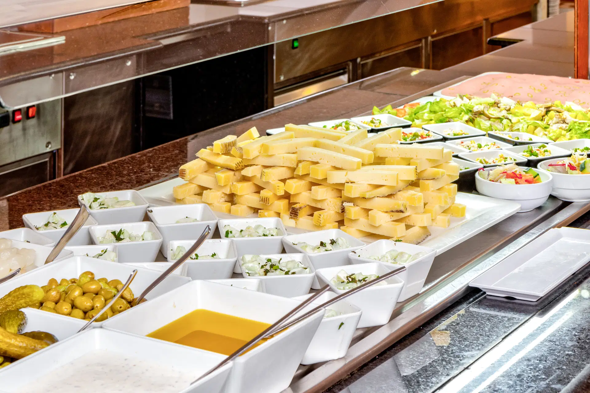 All Inclusive: snídaně (08:00-10:00), pozdní snídaně (10:30-11:30), oběd (13:00-15:00) a večeře (19:30-21:30). Voda a víno k obědům a večeřím v ceně. Mezi jídly studené a teplé občerstvení, káva, čaj, zákusek, zmrzlina. Místní nealkoholické a alkoholické nápoje podávané v baru (10:30-22:30). Povinnost nosit náramek All Inclusive.