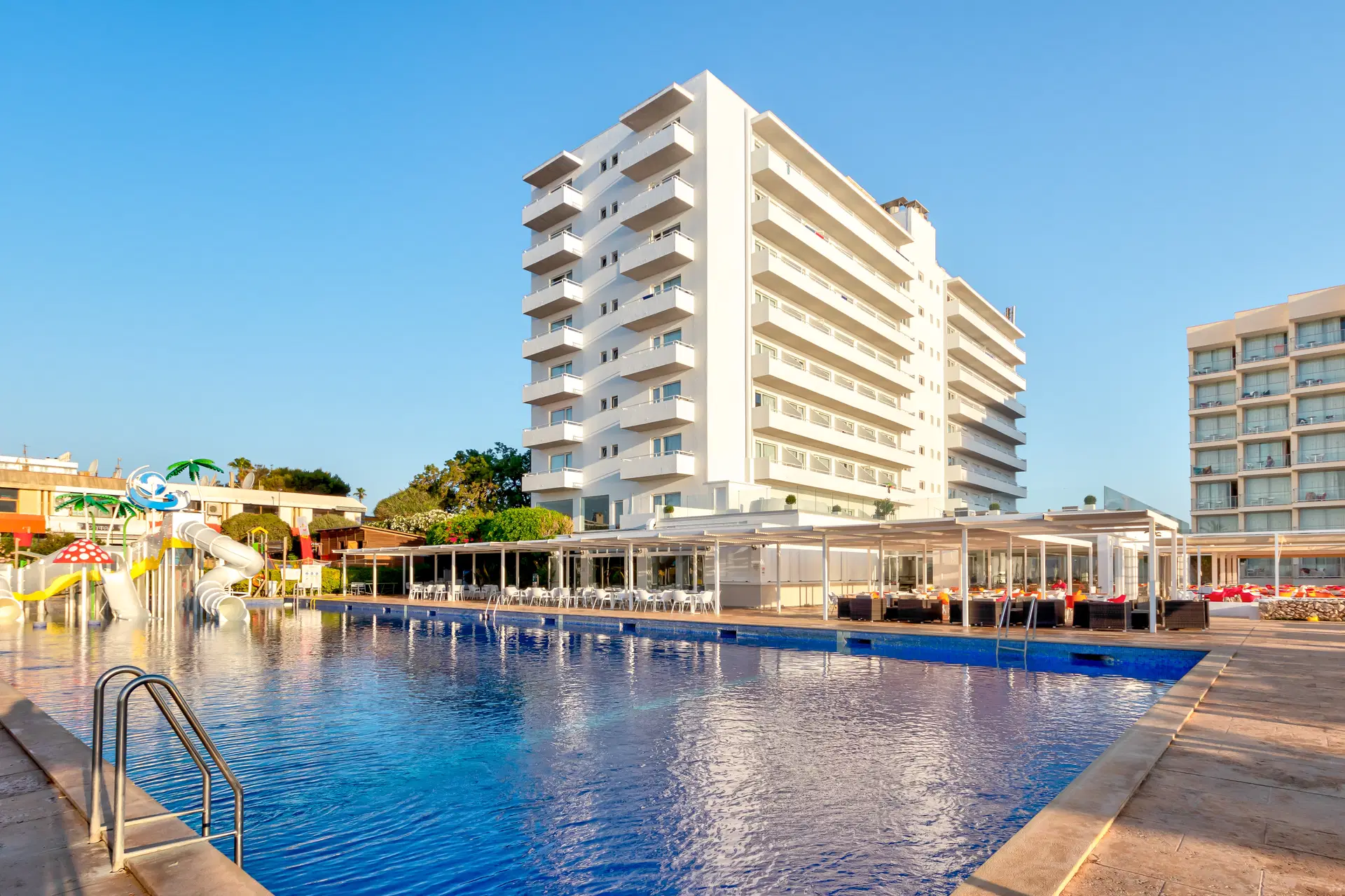 Recepce 24 hodin denně, lobby s barem, 2 výtahy, čítárna, klubovna a TV místnost. Restaurace s venkovní terasou a snack barem u velkého sladkovodního bazénu, Classic Beach Bar, tobogán, 2 bazény pro dospělé v klidné části objektu, dětské brouzdaliště, sluneční terasa s lehátky a slunečníky (zdarma) a lehátka s baldachýnem u bazénu (za poplatek 10 EUR/den nebo 50 EUR/týden). Plážové osušky k dispozici za poplatek 5 EUR/týden a zálohu 5 EUR. Akceptovány jsou kreditní karty Visa a Mastercard.