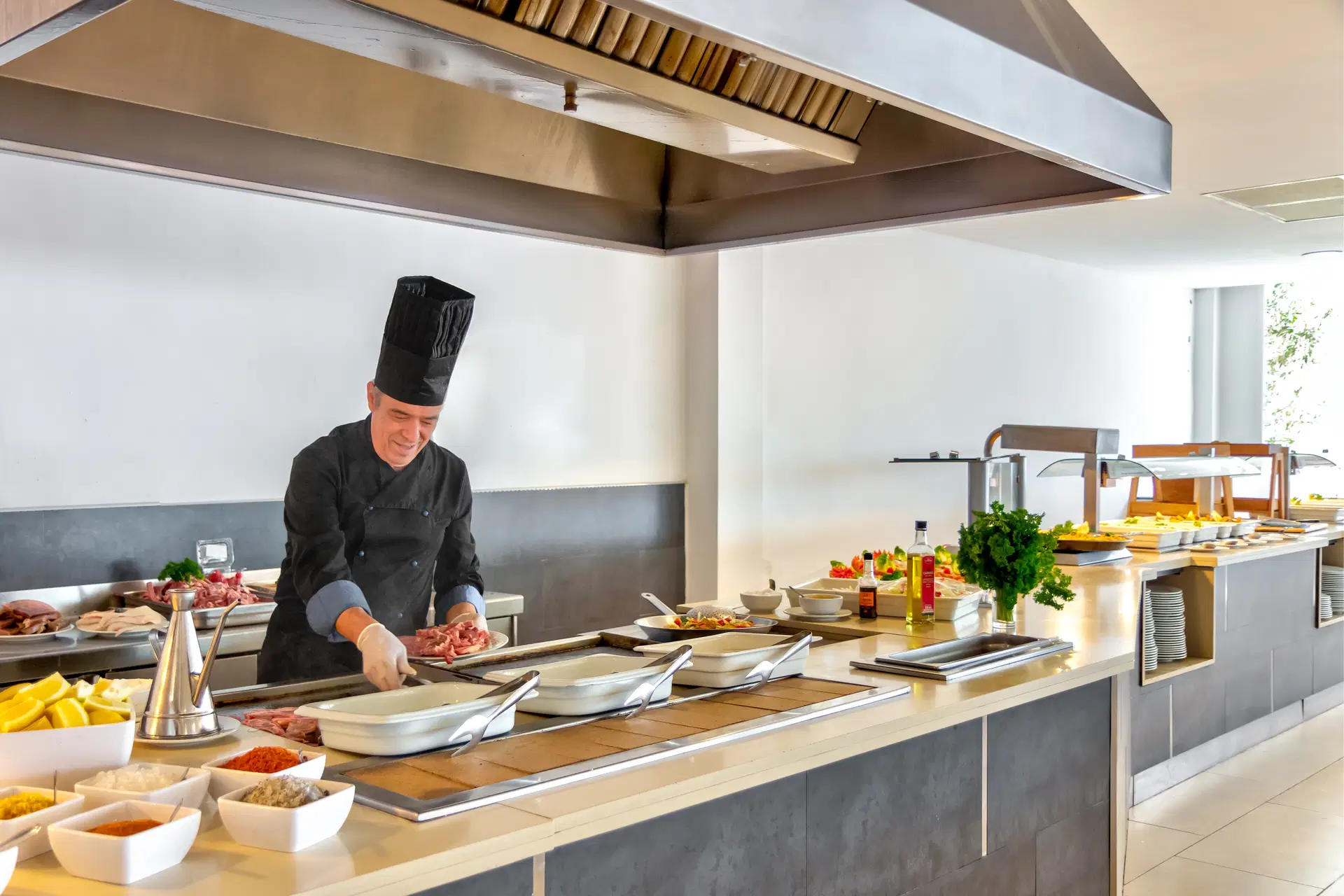 All Inclusive: snídaně (08:00-10:00), oběd (13:00-15:00) a večeře (19:30-21:30) - formou bufetu v hlavní restauraci. Mezi jídly studené a teplé občerstvení, káva, čaj, zákusky, zmrzlina. Místní nealkoholické a alkoholické nápoje podávané v baru (10:30-22:30). Víno, pivo, voda a nápoje během jídla. Povinnost nosit náramek All Inclusive, za který se neúčtuje záloha.