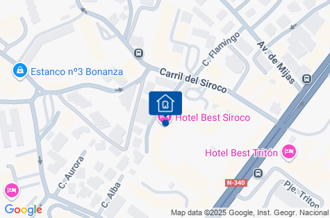 Hotel v andaluském stylu se nachází v blízkosti. 2,5 km od centra letoviska a cca 800 m od přístavu. Od letiště v Malaze je vzdálen přibližně 90 km. Ve vzdálenosti 100 m od hotelu se nachází autobusová zastávka zajišťující dopravu do okolních měst a obcí.