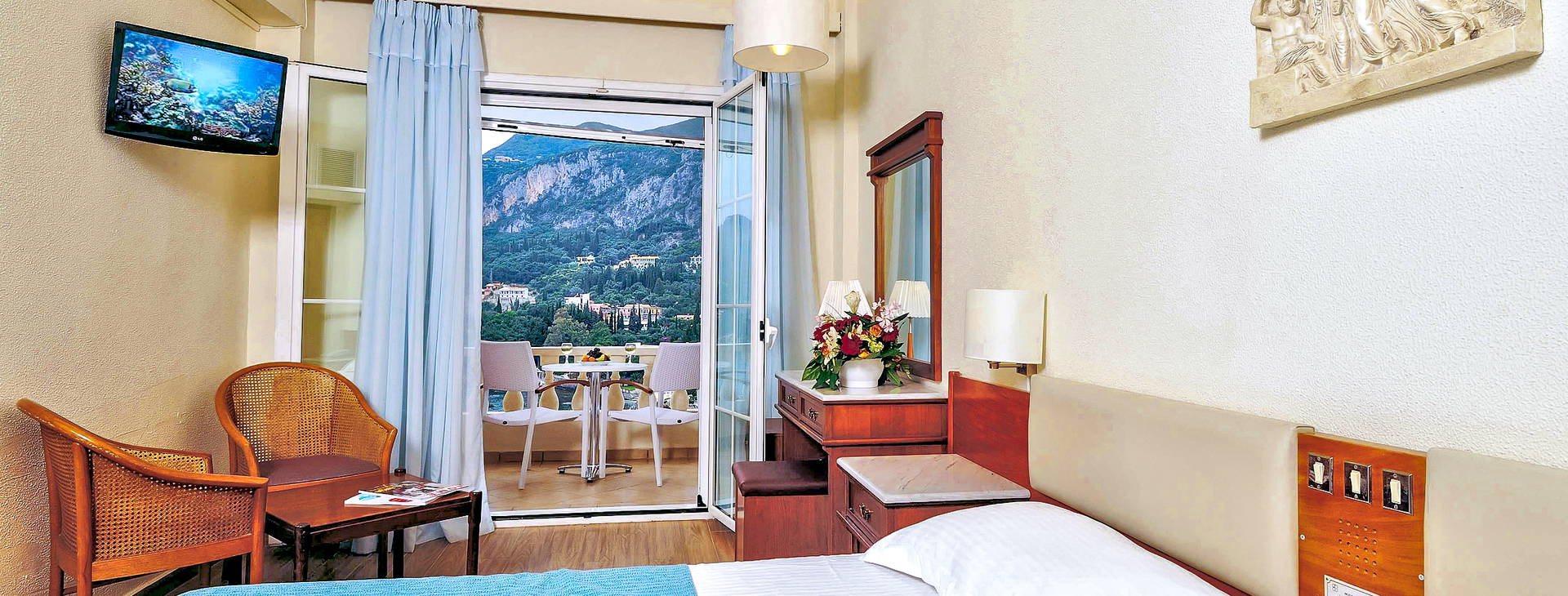 Sraz u stanoviště Rainbow 2 hodiny před plánovaným odletem letadla. Přelet na ostrov Korfu v Řecku. Aktuální letové řády sledujte na R.pl/rozklady. Po příletu setkání s průvodcem a transfer do hotelu na
