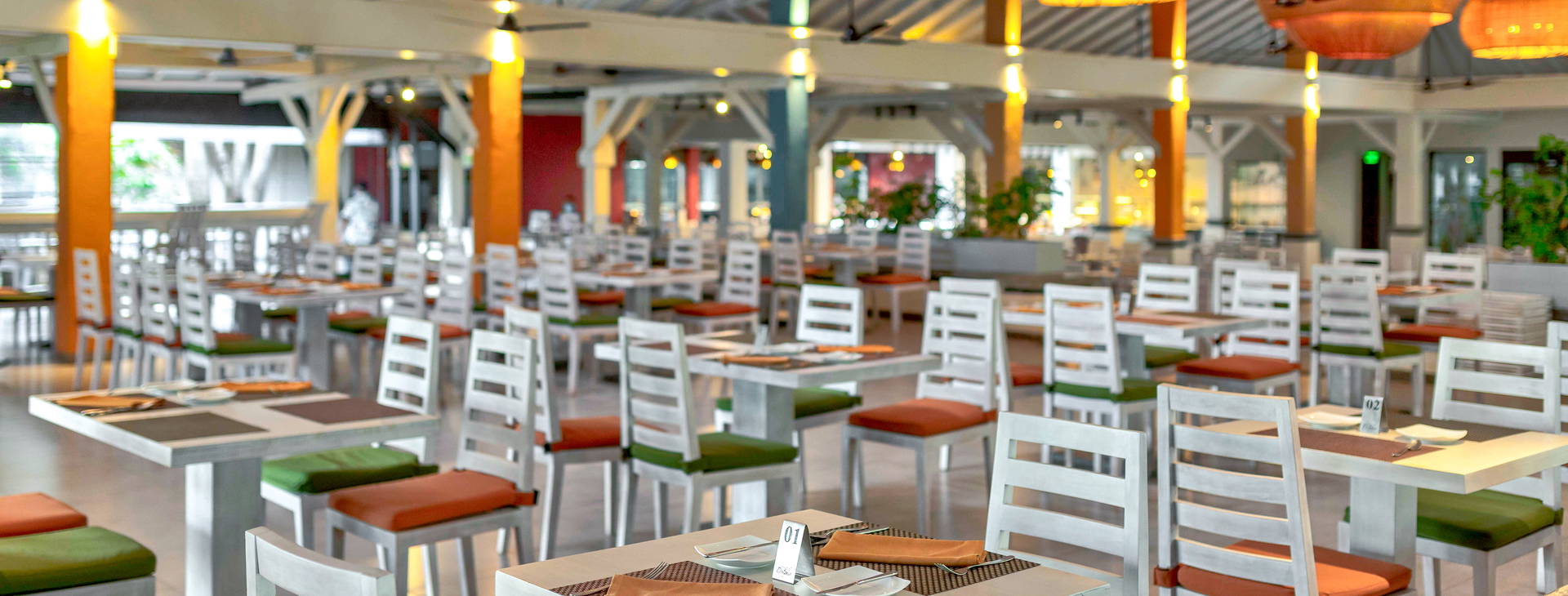 All Inclusive: snídaně, obědy a večeře formou bufetu v hlavní restauraci, občerstvení během dne v barech (10:30-17:30), odpolední čaj, káva a čaj (16:30-17:30), tematické večeře, noční občerstvení (23:00-24:00). Místní nealkoholické nápoje, alkoholické nápoje a koktejly na bázi místních lihovin k dispozici v barech (10:00-24:00): Bar Flippers, Aqua Bar, The Cove (10:00-18:00), Anchor Bar (během představení). 3 x týdně trh s čerstvými mořskými plody: zakoupené produkty připraví šéfkuchař k večeři (do 500 LKR zdarma, nad tuto částku zákazníci rozdíl doplatí). Další poplatky: restaurace a'la carte a jídla, šampaňské, víno, čerstvě vymačkané džusy.