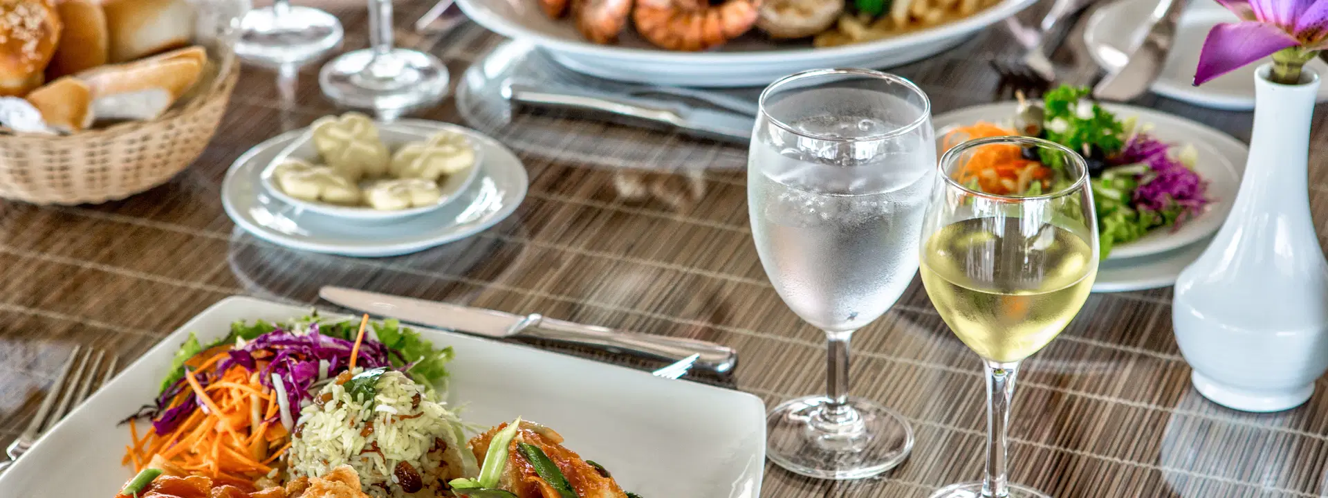 All Inclusive: 3 jídla formou bohatého bufetu podávaná v hlavní restauraci s nabídkou místní a mezinárodní kuchyně, občerstvení v kavárně (10:30-12:00), káva a zákusek (15:00-17:00), místní nealkoholické a alkoholické nápoje (10:00-24:00), vybrané koktejly, točené pivo a 2 lahve minerální vody denně dodávané na pokoj. Za poplatek: víno, lahvové pivo, importované nápoje, čerstvé ovocné šťávy, espresso, cappuccino.