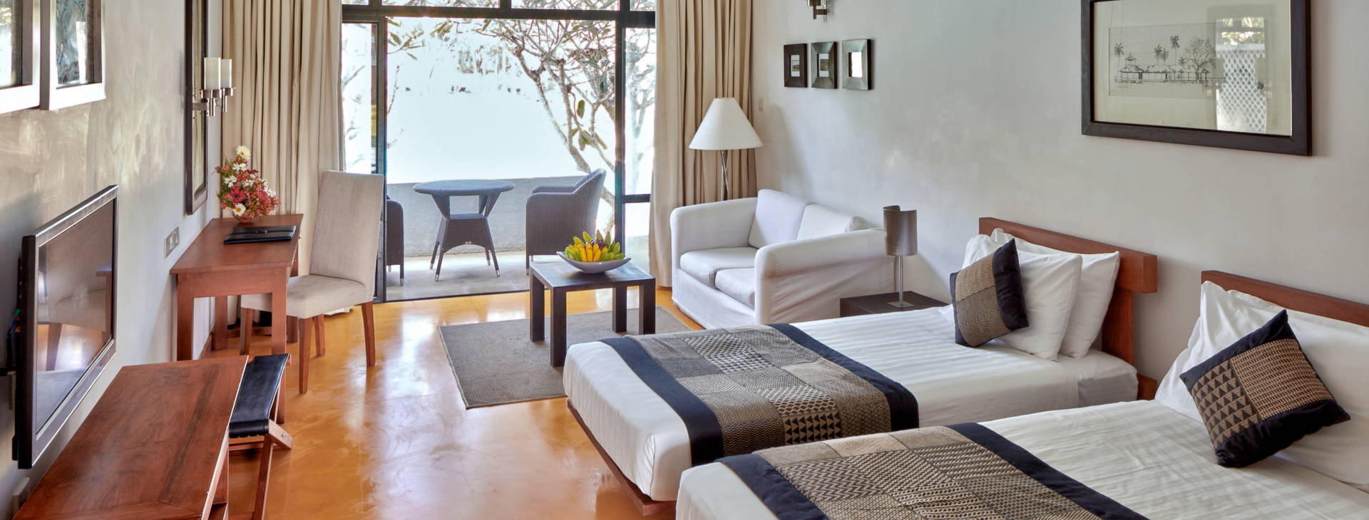 .Vysoce kvalitní hotel, velmi prostorný a stylově zařízený, ideální pro náročné klienty. Jeden z největších hotelových bazénů na Srí Lance, velmi pěkně zakomponovaný do palmové zahrady. Zákazníci si chválí hotelovou kuchyni. Za hotelem vede železniční trať, což hostům nijak nevadí.