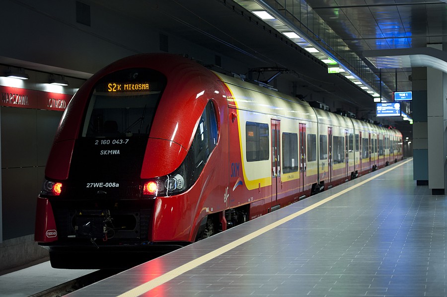 Vlaky jezdí na trase: WARSZAWA LOTNISKO CHOPINA – Warszawa Służewiec – Warszawa Żwirki a Wigury – Warszawa Rakowiec – Warszawa Al. Jerozolimskie – Warszawa Zachodnia – Warszawa Centralna – Warszawa Wschodnia - Warszawa Toruńska – Warszawa Płudy – Legionowo – Legionowo Przystanek – Chotomów – Nowy Dwór Mazowiecki – MODLIN. (cca v hodinových intervalech)