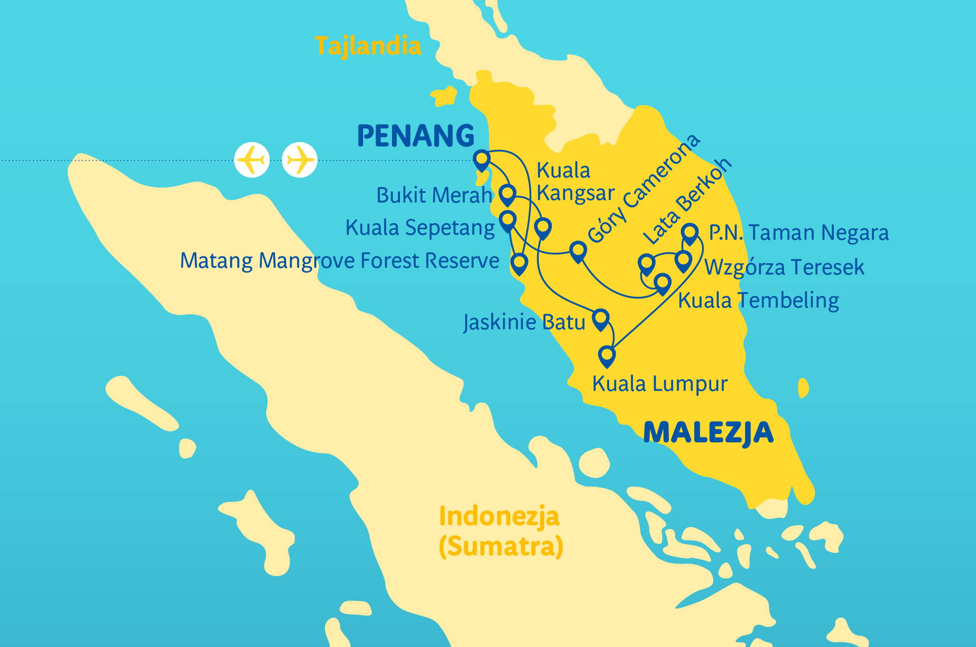 Klienti, kteří se vrací do Polska, jsou odvezeni na letiště v Penangu a charterovým letem (nonstop) se vracejí do Polska. Aktuální letové řády najdete na stránkách r.pl/rozklady.