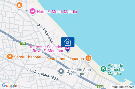 Luxusní hotel obklopený svěžími zahradami se nachází v těsné blízkosti (cca 1 km) centra Mahdie - okouzlujícího městečka s historickou starou medinou, atmosférickými uličkami a kavárnami, které je proslulé svými krásnými písečnými plážemi. Hotel je vzdálen přibližně 45 km od letiště Monastir a přibližně 90 km od letiště Enfidhi. POZNÁMKA!Cena nezahrnuje místní turistickou daň ve výši 3 TND/osoba/den. Maximální turistická daň se počítá za 7 po sobě jdoucích hotelových nocí i při delších pobytech. Osoby mladší 12 let jsou od placení turistické daně osvobozeny. Daň je povinná a platí se přímo na recepci před ubytováním klientů v hotelu.