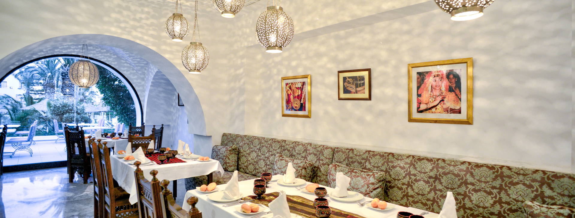 Dále jsou k dispozici dvě restaurace s italskou a tuniskou kuchyní (19:00 - 21:00) a restaurace a'la carte u bazénu.