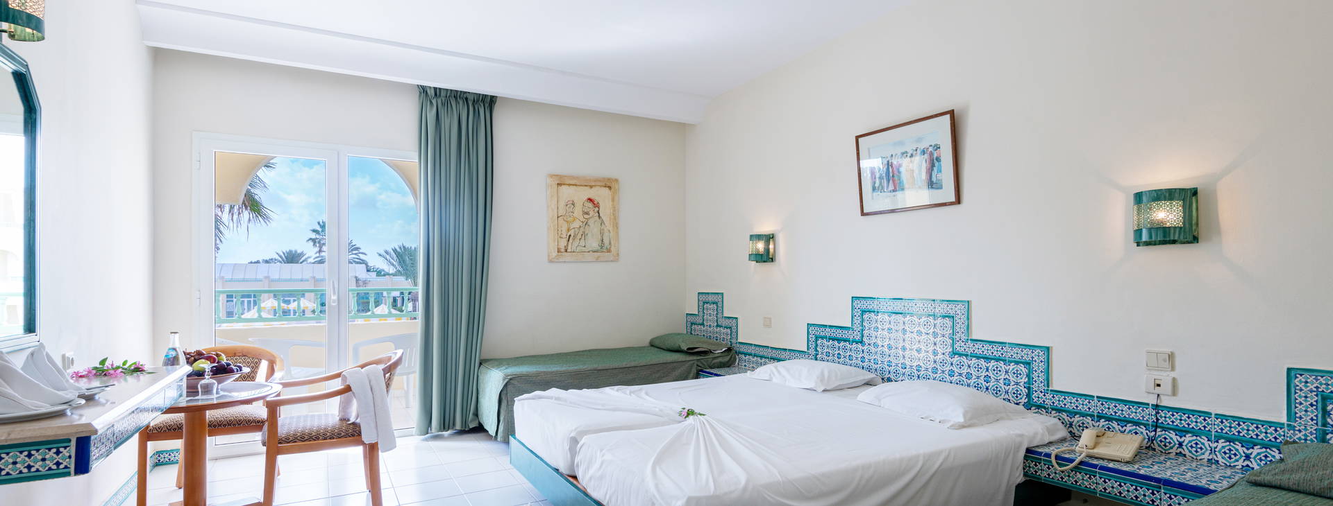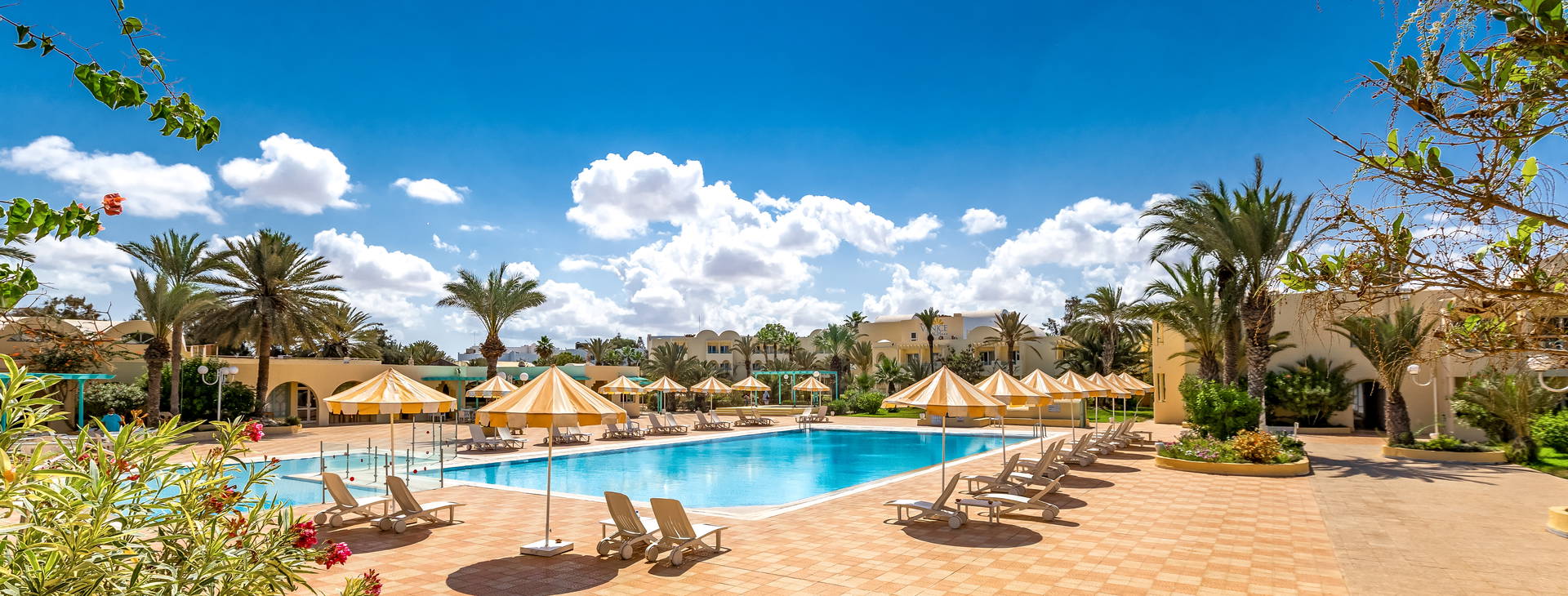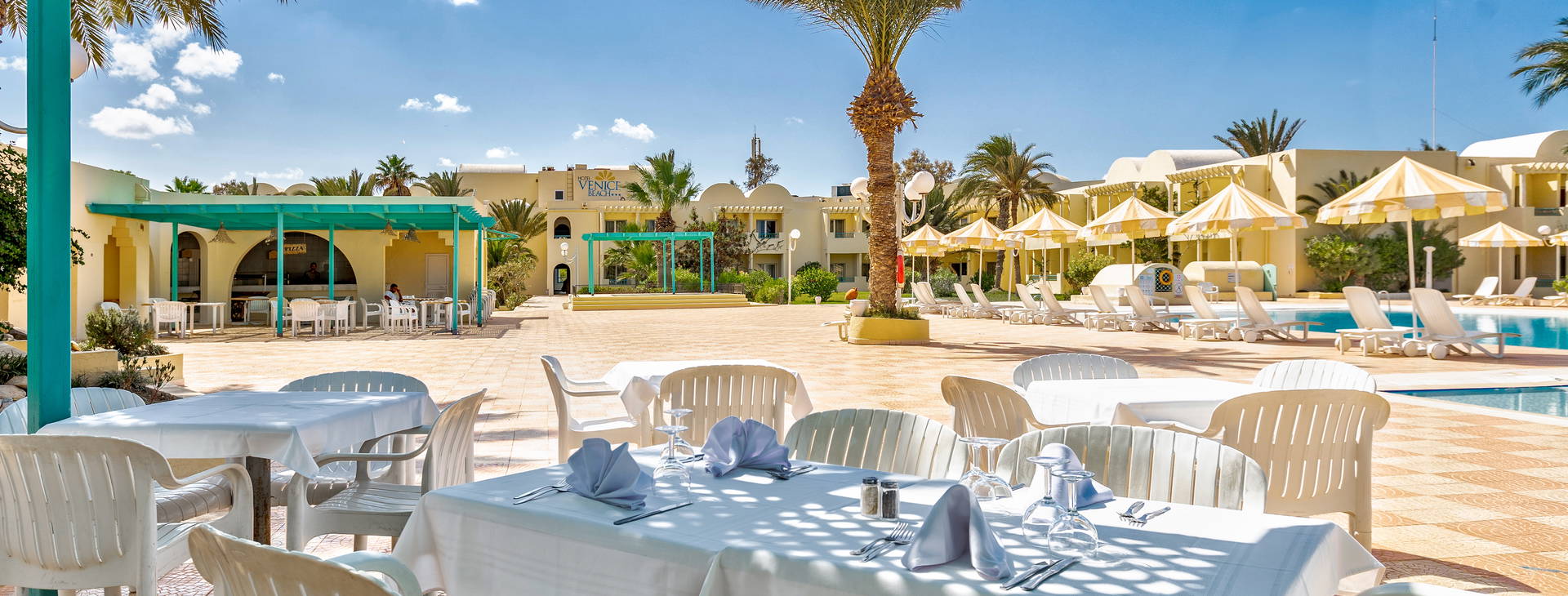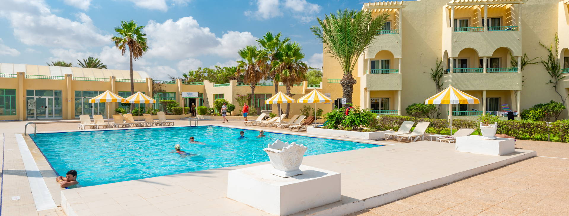 Hotel se nachází na malebném ostrově Djerba v pobřežní hotelové zóně ve vzdálenosti přibližně 18 km od hlavní vesnice Houmt Souk, kde jsou obchody, bary a restaurace a tradiční arabský bazar. Na letiště Djerba - Zarzis je to přibližně 18 km. Upozorňujeme, že cena nezahrnuje místní turistickou daň ve výši 12 TND/osoba/den. Maximální turistická daň se počítá za 15 po sobě jdoucích hotelových nocí, a to i v případě delšího pobytu. Osoby mladší 12 let jsou od placení turistické daně osvobozeny. Turistická daň je povinná a platí se přímo na recepci před ubytováním klientů v hotelu.