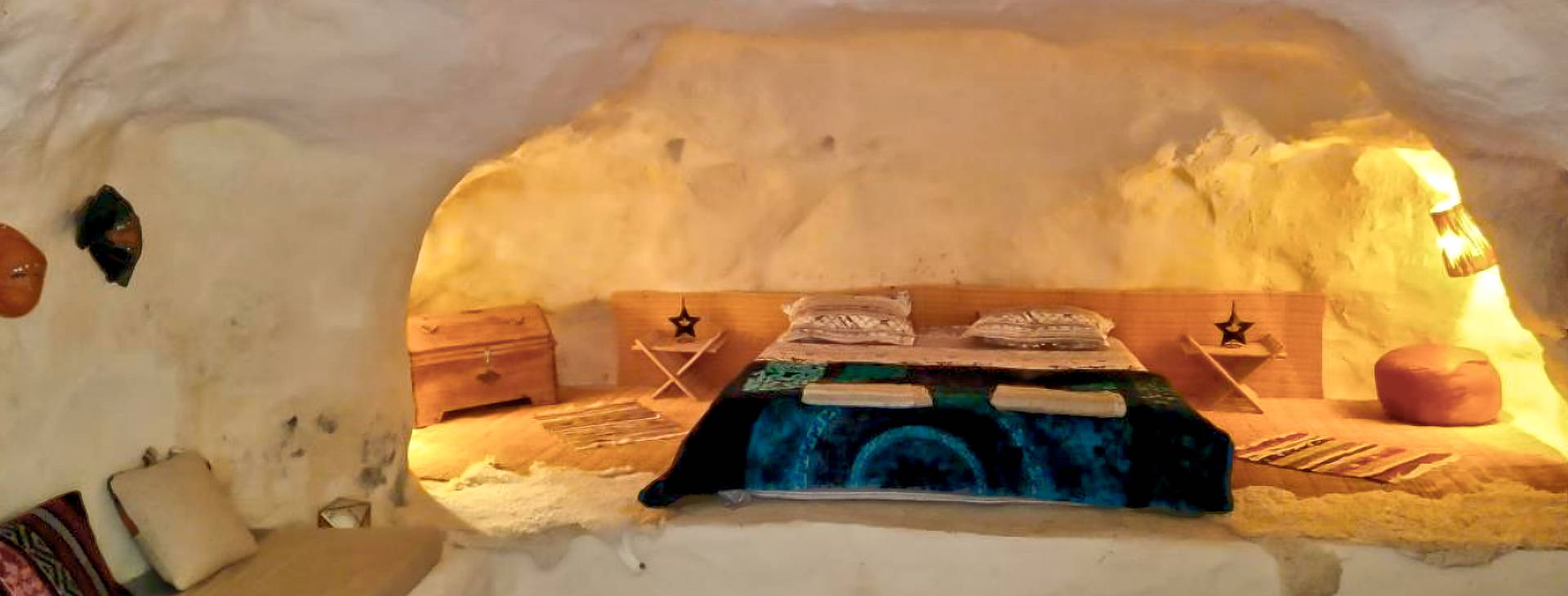 Po snídani se vydáme vozidlem do "Jurského světa" v Oued El Khil. Po stopách paleontologů uvidíme fragmenty zkamenělých stromů a navštívíme naleziště dinosauřích pozůstatků. Navštívíme středověkou berberskou vesnici Ksar Hadada, odkud se vydáme na pěší výlet do městečka Ghomrassen (asi 5 hodin chůze). V Ghomrassenu si vychutnáme ochutnávku vyhlášené pekařské speciality a tradičních cukrářských výrobků. Na závěr dne se vydáme na večeři a na kouzelnou noc do kempu v srdci oázy Insefri ( POZNÁMKA: ubytování ve stanech pro 1 nebo 2 osoby - ve stanech: spacáky, deky a také jednoduché hygienické potřeby. Jedná se o typické kempování "pod stanem" pouze na tuto jednu noc, proto se voda ke koupání podává v karniškách (teplá a studená voda)).