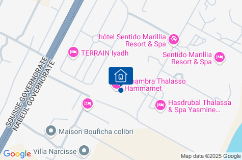Hotel se nachází v letovisku "Yasmine Hammamet" (jižní Hammamet) - největším přístavu v Tunisku s širokými plážemi, které jsou atraktivní zejména pro milovníky pláží.