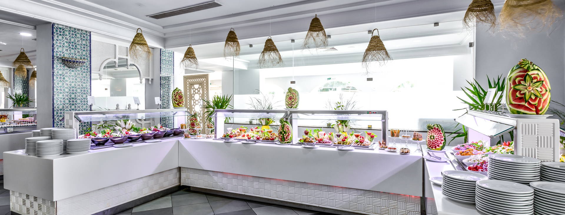 All Inclusive: snídaně, obědy a večeře formou bohatého bufetu. Nealkoholické nápoje během jídla jsou zahrnuty v ceně. Občerstvení a alkoholické i nealkoholické nápoje, káva, čaj jsou k dispozici v barech rozmístěných po celém objektu.