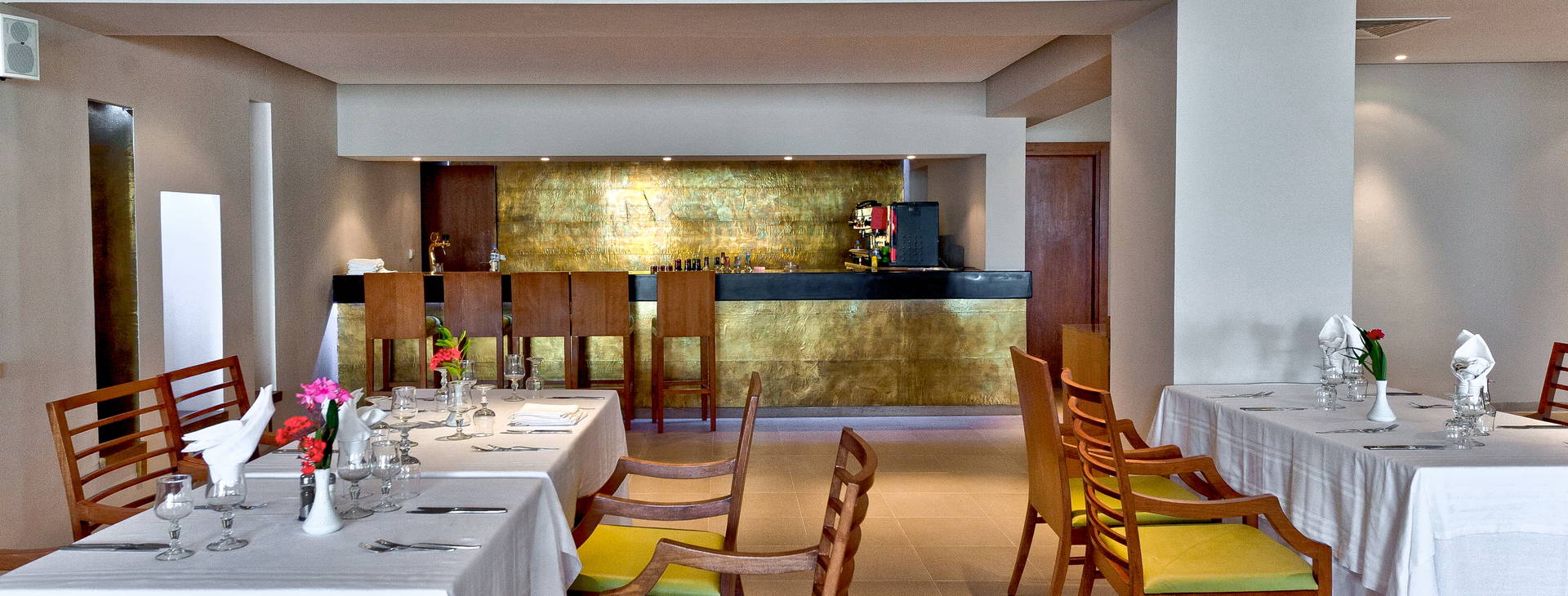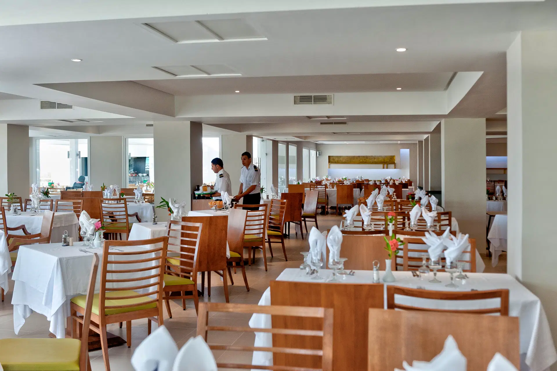 Snídaně, pozdní snídaně, obědy a večeře (pozdní večeře do 22:00) se podávají formou bufetu v hlavní restauraci (nápoje na požádání podává číšník). Odpolední přestávka na kávu, občerstvení u bazénu a/nebo na pláži,