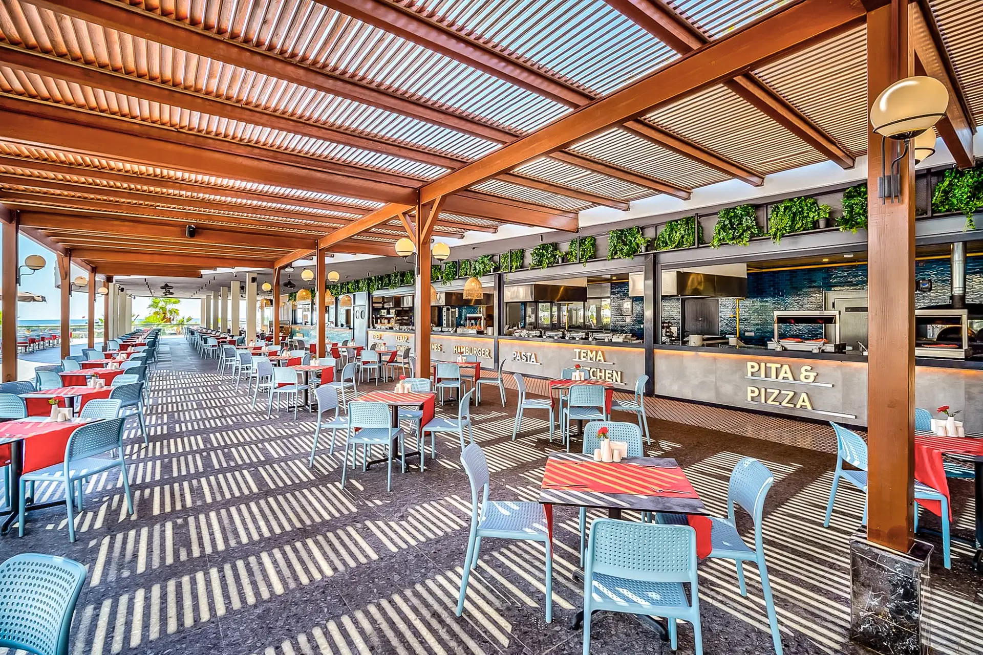 Ultra All Inclusive: snídaně (07:00-10:00), pozdní snídaně (10:00-11:00), oběd (12:30-14:00), večeře (18:30-21:00) formou bohatého bufetu v hlavní restauraci, noční občerstvení (01:00-07:00) formou bufetu v restauraci Bistro, občerstvení v restauracích: V restauracích Food Court (11:00-18:30), Fast Corner (13:00-16:00) a Ocean Pier (13:00-16:00), turecké palačinky (10:00-15:30), sladkosti (13:00-23:00) a místní alkohol, vybraný importovaný alkohol a nealkoholické nápoje v lobby baru Infinity 24 hodin, v ostatních barech během otevírací doby. Kromě toho možnost využít jednou za pobyt bezplatně restauraci a'la carte.
