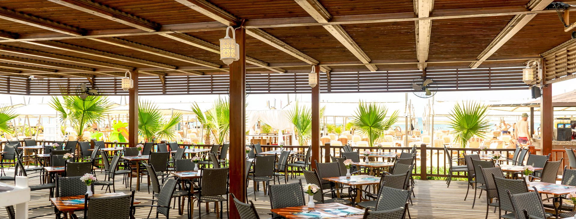.Recepce 24 hodin denně, hlavní restaurace, 3 restaurace a'la carte: italská, indicko-mexická a rybí (každá za poplatek cca 10 EUR/osoba, nutná rezervace), 8 různých barů, včetně: lobby baru, baru u bazénu, aqua baru, snack baru, plážového baru. 3 bazény: velmi velký bazén nepravidelného tvaru, relaxační bazén a poloolympijský bazén a v aquaparku 3 bazény s 8 skluzavkami (v provozu v určitých časech), 3 brouzdaliště, z toho jedno se třemi skluzavkami, zdarma lunapark (pro děti starší 7 let, pro mladší děti - nutný písemný souhlas rodičů), dětské hřiště.