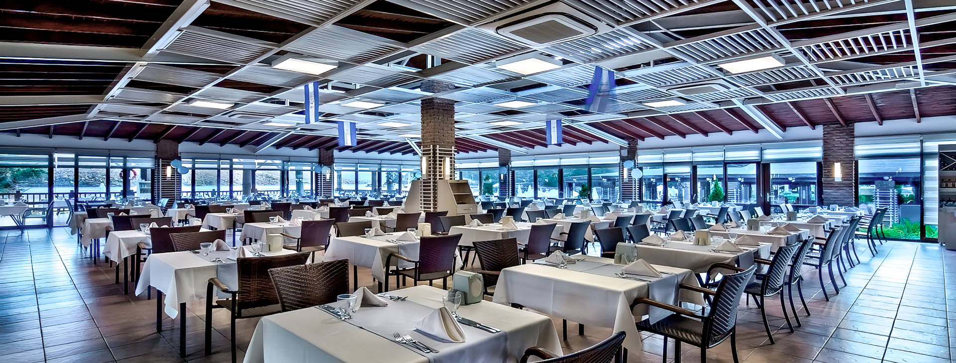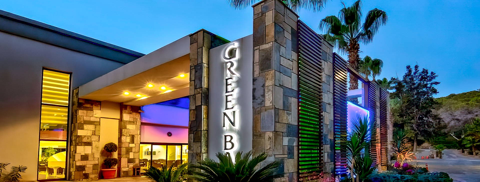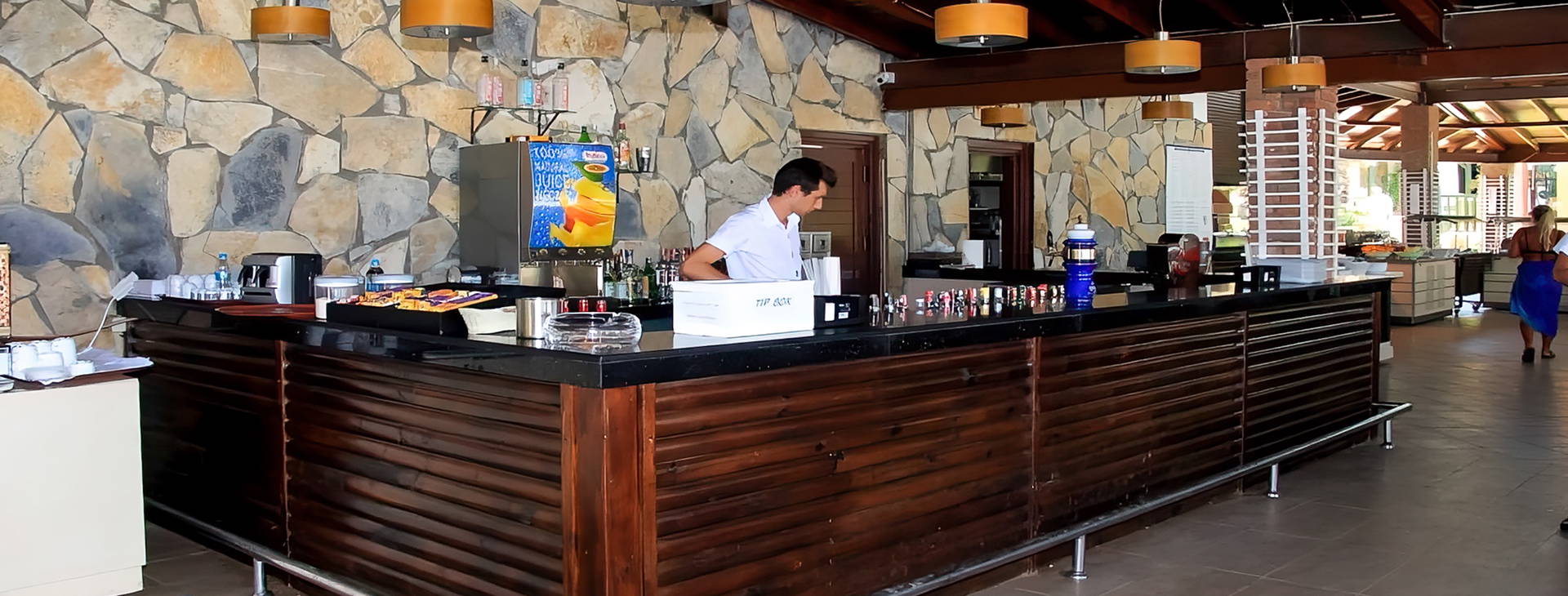 All Inclusive zahrnuje snídani (7:00-10:00), oběd (12:30-14:30) a večeři (18:30-21:30) v hlavní restauraci hotelu Green Bay. Kromě toho jsou k dispozici snack restaurace (11:00-17:00), snack bar (00:00-07:00), zmrzlinový bar (11:00-18:00) a cukrárna (14:00-20:00). Restaurace a la carte: Istanbul (tradiční turecká kuchyně, otevřeno dvakrát týdně od 19:30-21:30, nutná rezervace), Sailor (restaurace s mořskými plody, otevřeno od 19:30-21:30, za příplatek a nutná rezervace). Hosté mohou také navštívit lobby bar (10:00-00:00, místní a importované nealkoholické a teplé nápoje), bar Lagoon (10:00-18:00, místní nealkoholické nápoje), bar na pláži (otevřen 24 hodin denně), Frozen bar (10:00-18:00, studené nápoje), Freedom bar (10:00-17:00, místní nealkoholické nápoje), Beer Garden (10:00-18:00), bar 4.8 Feet (10:00-00:00, místní a importované nealkoholické nápoje, teplé nápoje), Claim bar (10:00-18:00, pivo, víno a nealkoholické nápoje).