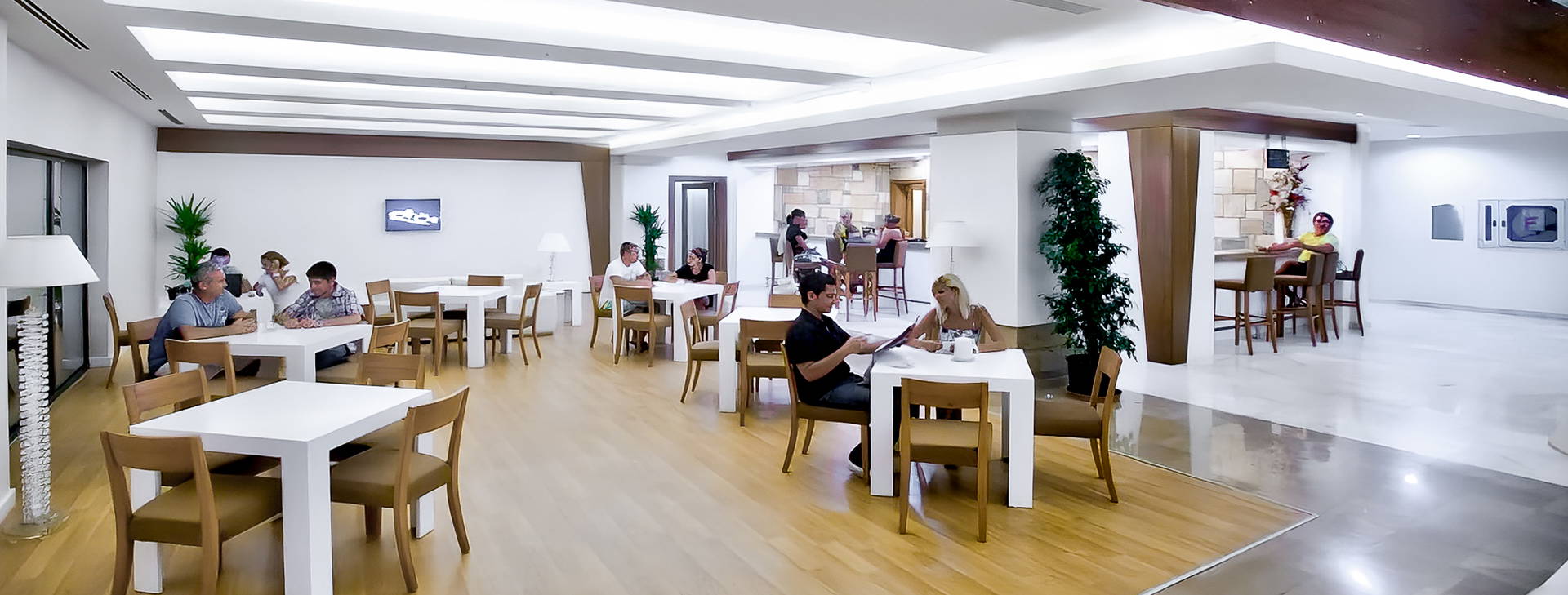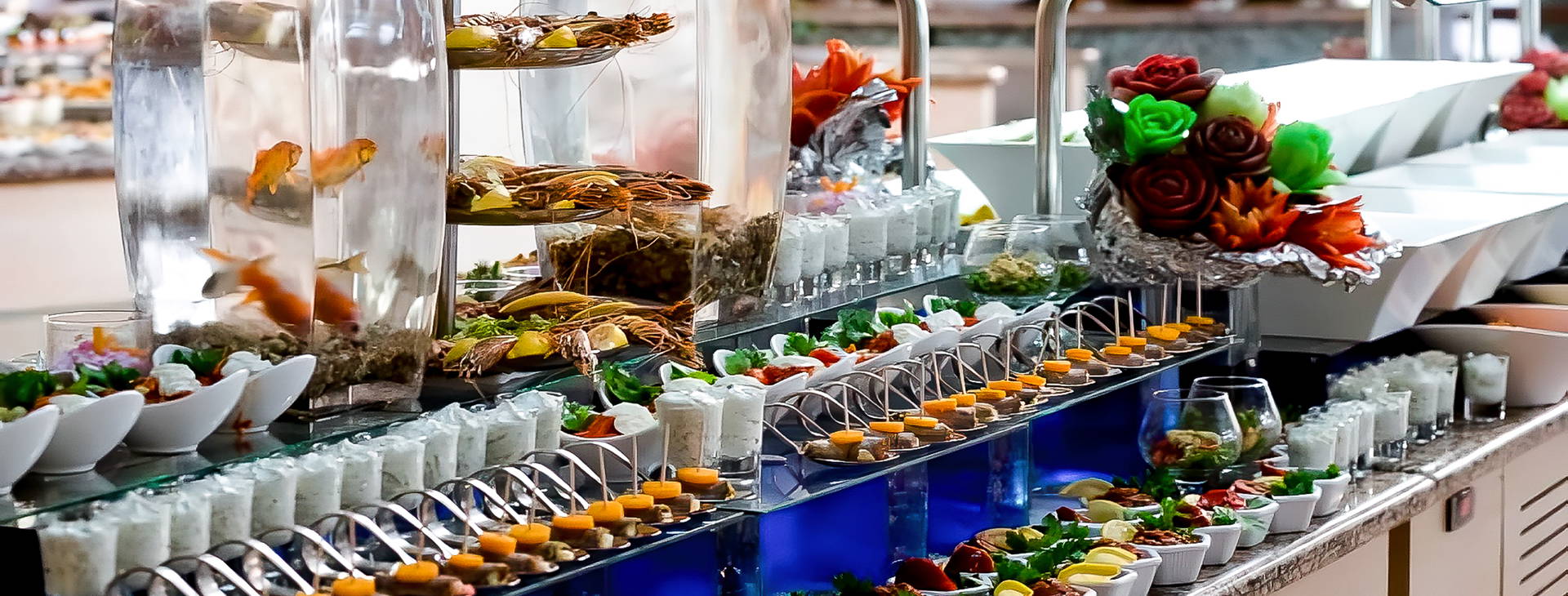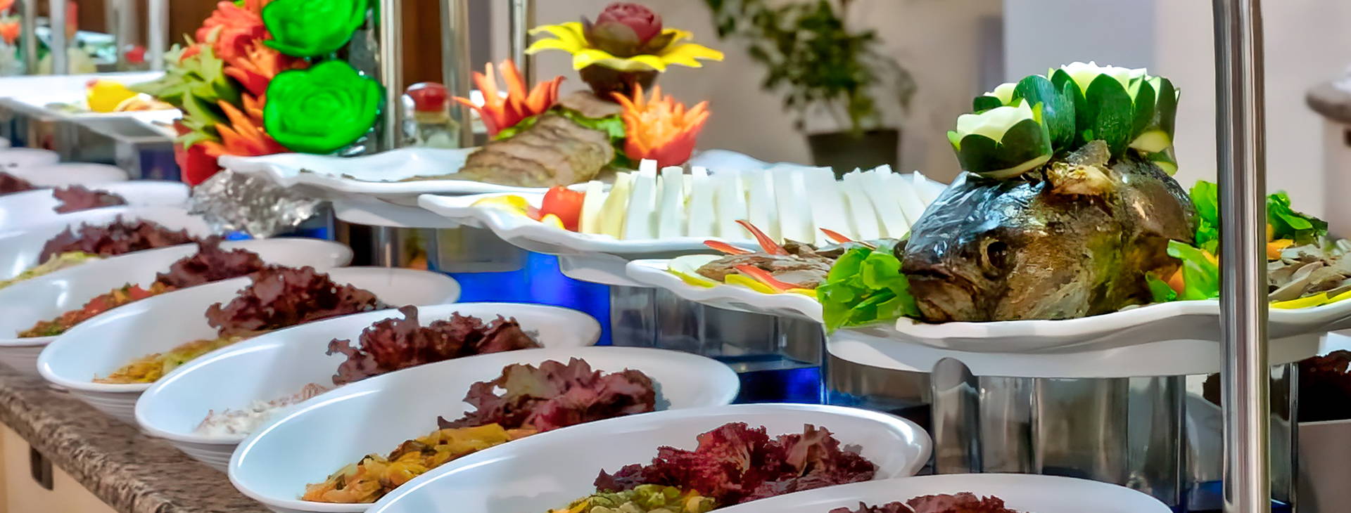 All Inclusive zahrnuje snídani (7:00-10:00), oběd (12:30-14:30) a večeři (18:30-21:30) v hlavní restauraci hotelu Green Bay. Kromě toho jsou k dispozici snack restaurace (11:00-17:00), snack bar (00:00-07:00), zmrzlinový bar (11:00-18:00) a cukrárna (14:00-20:00). Restaurace a la carte: Istanbul (tradiční turecká kuchyně, otevřeno dvakrát týdně od 19:30-21:30, nutná rezervace), Sailor (restaurace s mořskými plody, otevřeno od 19:30-21:30, za příplatek a nutná rezervace). Hosté mohou také navštívit lobby bar (10:00-00:00, místní a importované nealkoholické a teplé nápoje), bar Lagoon (10:00-18:00, místní nealkoholické nápoje), bar na pláži (otevřen 24 hodin denně), Frozen bar (10:00-18:00, studené nápoje), Freedom bar (10:00-17:00, místní nealkoholické nápoje), Beer Garden (10:00-18:00), bar 4.8 Feet (10:00-00:00, místní a importované nealkoholické nápoje, teplé nápoje), Claim bar (10:00-18:00, pivo, víno a nealkoholické nápoje).