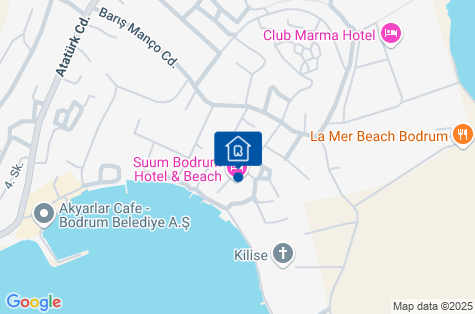 Hotel Suum Bodrum pro osoby starší 16 let se nachází na jihu Bodrumu, přímo na písečné pláži. Hotel je vzdálen přibližně 8 km od přístavu Turgutreis a 20 km od přístavu Bodrum. Vzdálenost od mezinárodního letiště Bodrum je přibližně 56 km.