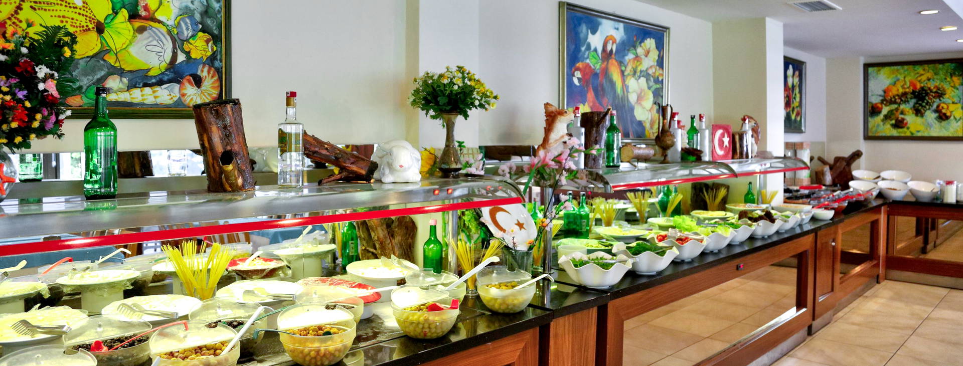 All Inclusive: snídaně (07:30-10:00), oběd (12:30-14:00) a večeře (19:30-21:30) formou bufetu. Během dne je k dispozici občerstvení. Místní nealkoholické a alkoholické nápoje (rakija, vodka, gin, vybrané likéry a domácí víno) k dispozici v barech během otevírací doby. Za příplatek: dovážené nealkoholické a alkoholické nápoje, turecká káva, čerstvě vymačkané džusy, zmrzlina.