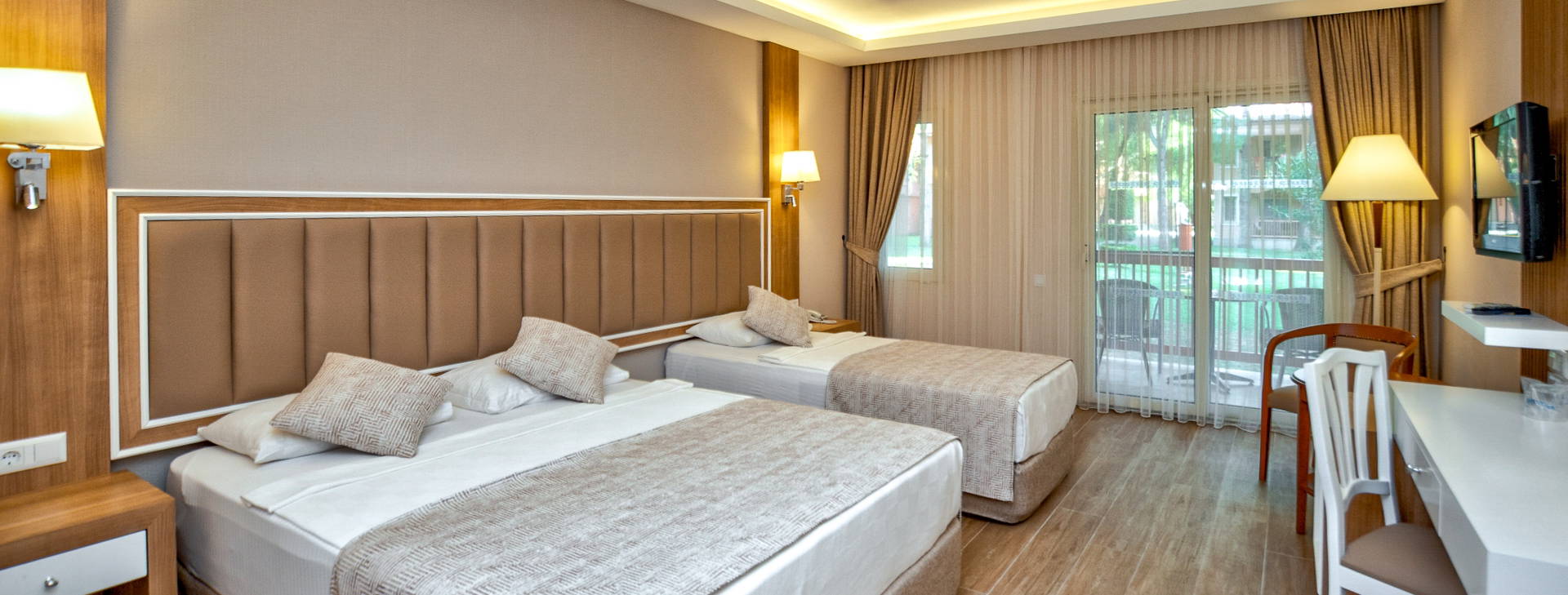 .Recepce 24 hodin, lobby, hlavní restaurace, 5 restaurací a'la carte: rybí, asijská, mexická (od 16. května do 30. září), turecká a italská (od 2. května do 14. října) (za poplatek cca 7 EUR/osoba, nutná rezervace), kavárna Ada, 4 bary: u bazénu, u relaxačního bazénu, na pláži a na diskotéce (za poplatek). 3 bazény, z toho jeden se skluzavkami (otevřený v určitých hodinách), relaxační bazén, brouzdaliště pro děti. Lehátka, slunečníky a osušky u bazénu zdarma. Za příplatek: obchod.