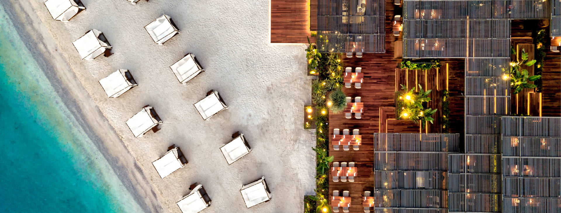 Hotel nabízí 3 písečné pláže: Joy - přímo u hotelu, Indigo (pouze pro dospělé) a Escape (nachází se na samotě) a molo o rozloze přibližně 1850 m2. Lehátka, slunečníky a osušky zdarma. Na molu s výhledem na moře a na pláži jsou k dispozici tzv. pavilony se slaměnou střechou (za příplatek).