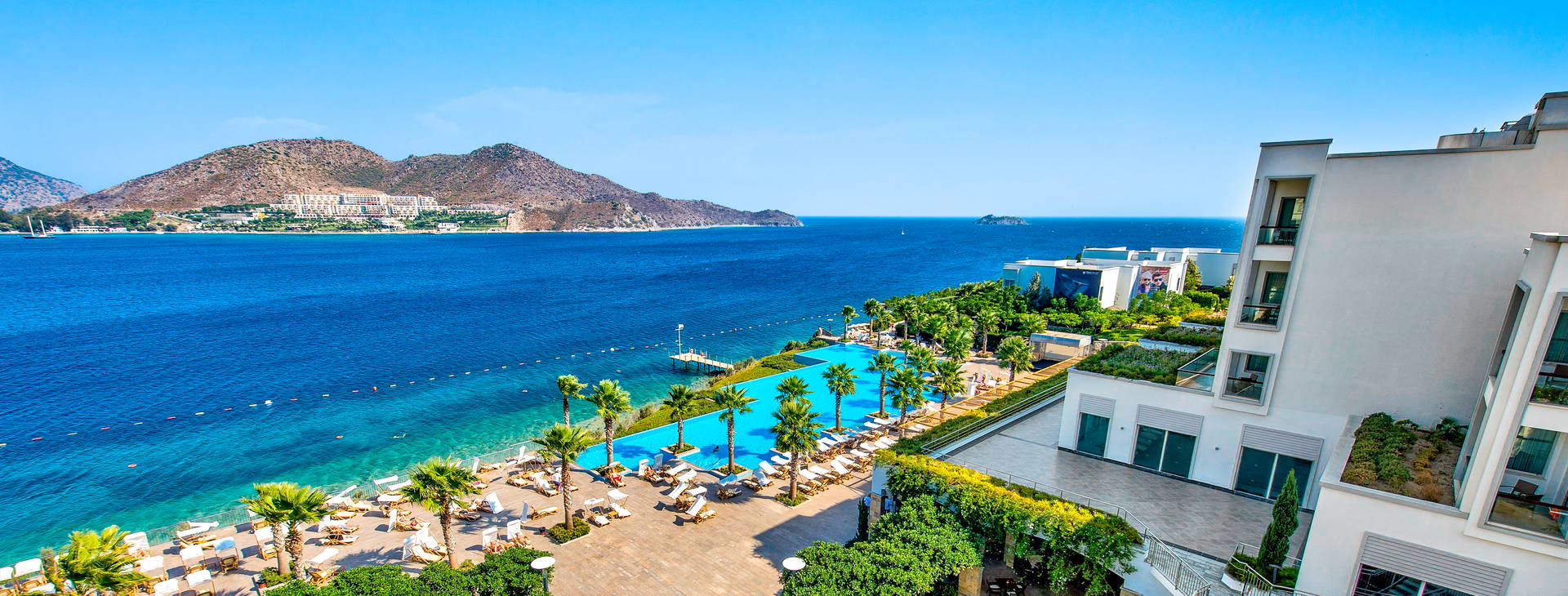 Luxusní pětihvězdičkový hotel se nachází v malé vesnici Akyarlar na rozlehlém výběžku na útesu s krásným výhledem na ostrov Kos. Přibližně 1,5 km od centra městečka s obchody a restauracemi, cca 9 km od Turgutreis s moderním přístavem, cca 25 km od centra živého města Bodrum a cca 60 km od letiště Milas - Bodrum.