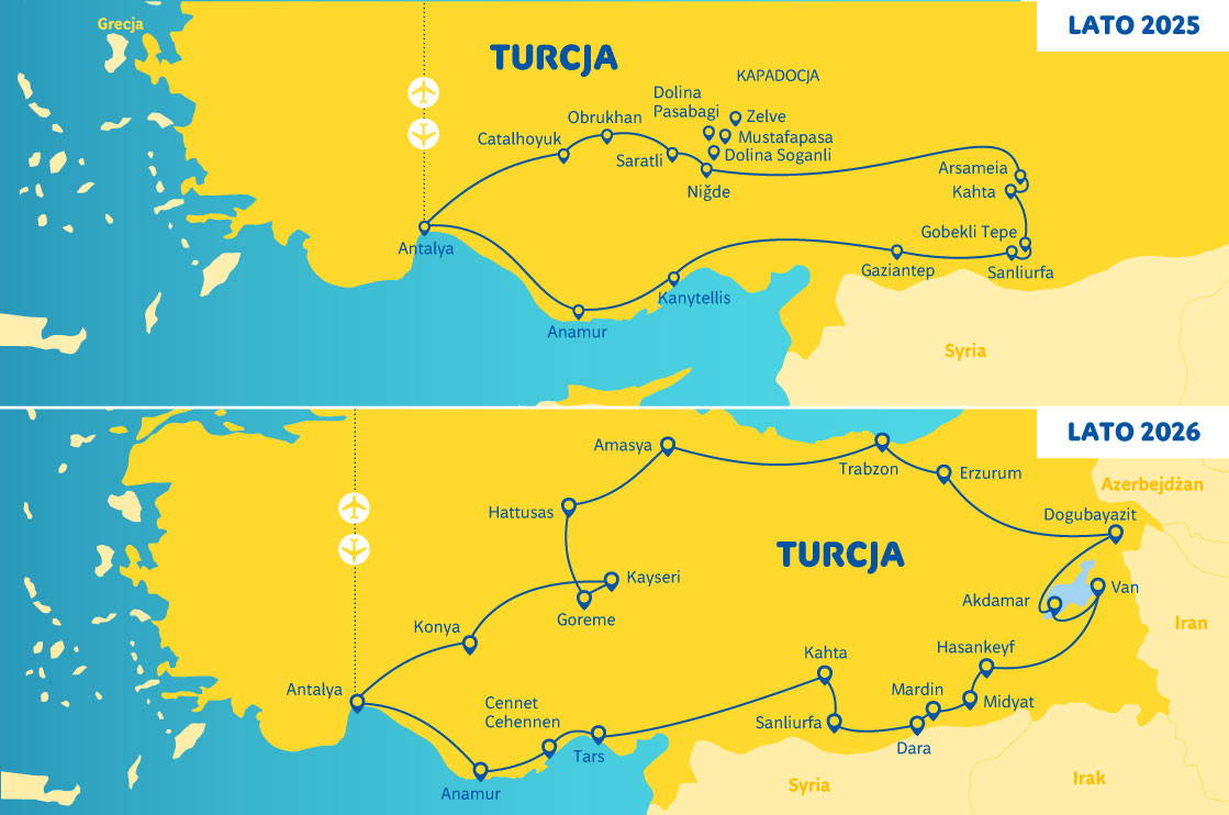 Turecko – Kouzelný Východ – 15 dní (11 dní poznávací zájezd, 3 dny odpočinku), klášter Sumela vytesaný do skály, Tarsus – místo narození sv. Pavla, jezero Van, ruiny Anamurium, Město proroků – Sanliurfa, Göbekli Tepe – nejstarší kultovní místo vytvořené člověkem, hora Nemrut, pohádková Kapadocie – dechberoucí let balónem (fakultativně), skanzen Soğanlı, odpočinek na Turecké riviéře.