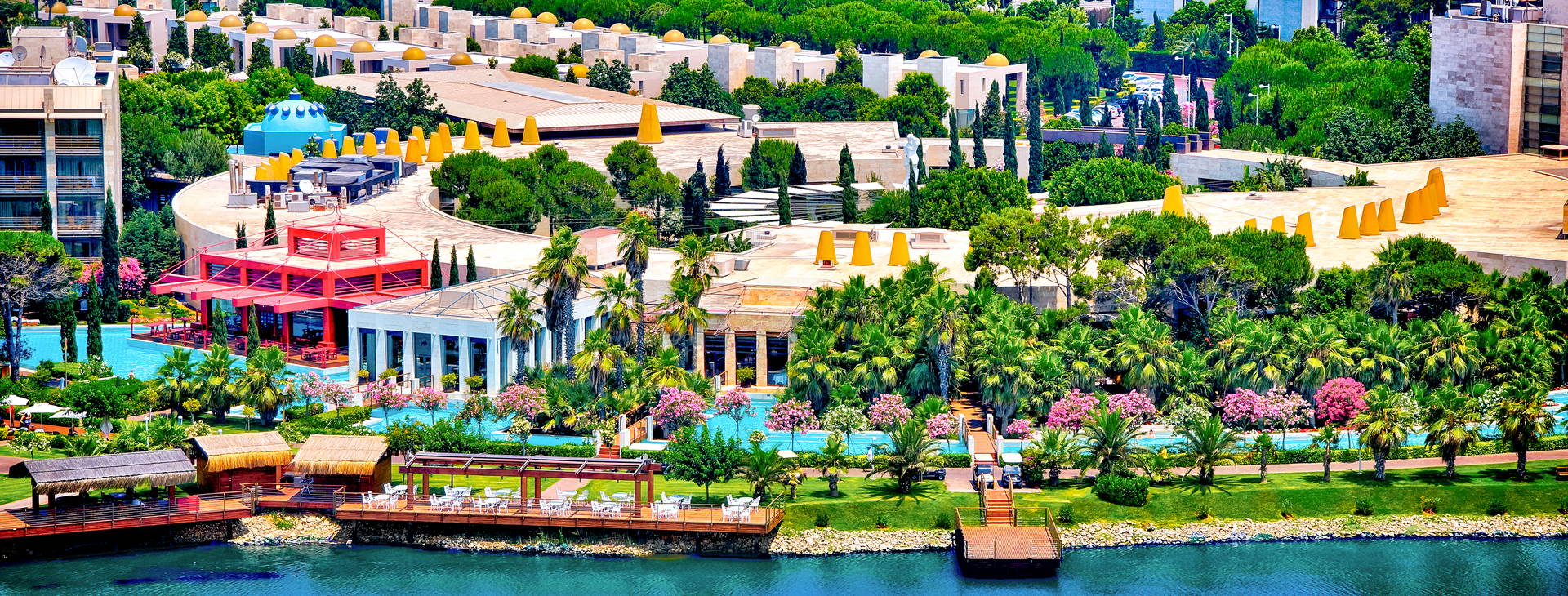 Hotel se nachází u blankytně modrého Středozemního moře a je zasazen do rozsáhlých upravených zahrad. Sousedí se sesterským hotelem Gloria Golf Resort. Od pláže je oddělen řekou Acisu, která mu dodává na půvabu. Nachází se asi 40 km od letiště Antalya, asi 148 km od letiště Gazipasa a jen asi 7 km od centra města Belek. Do centra Antalye je to přibližně 50 km.